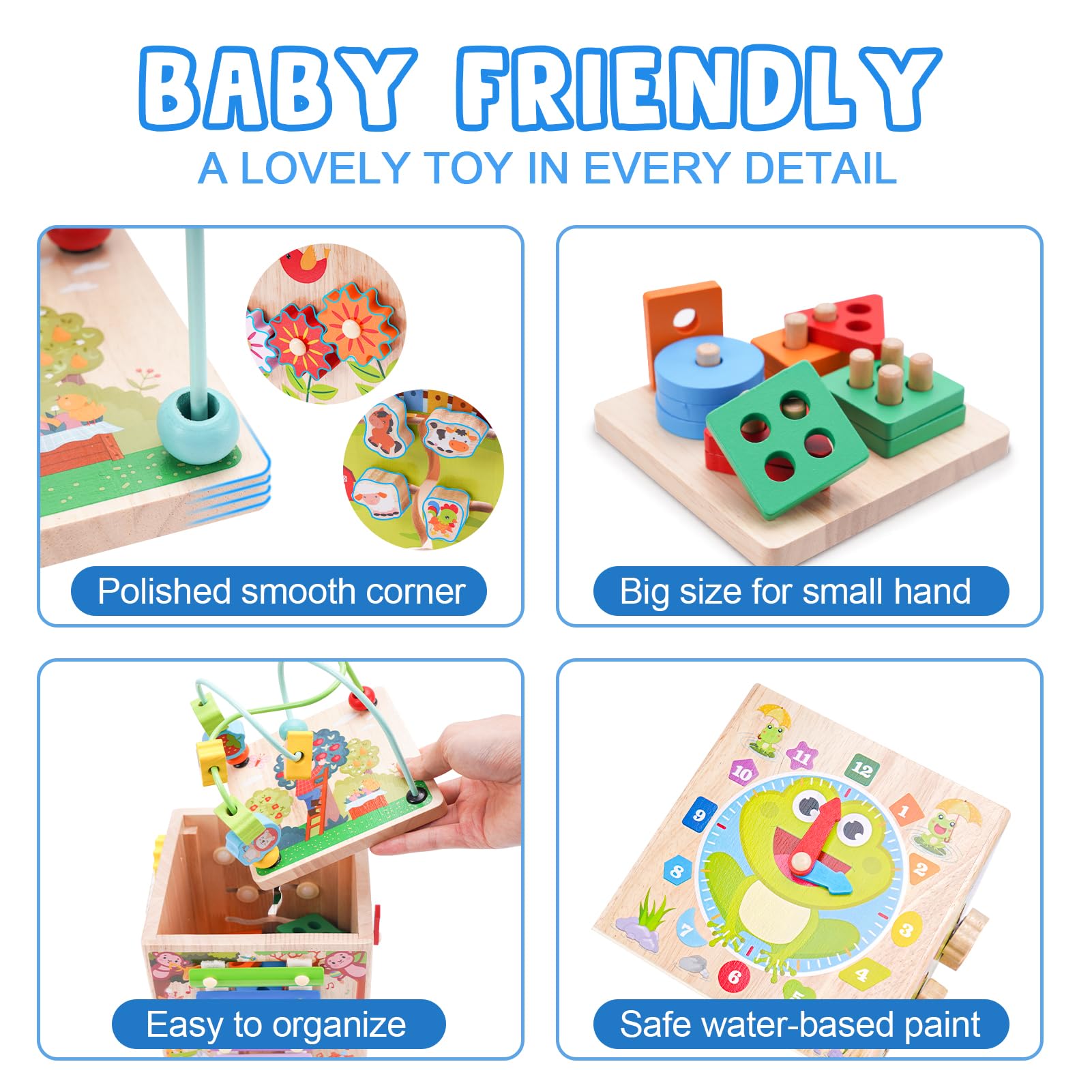 Wooden Activity Cube for Toddlers | Montessori Educational Toy for 1-3 Years | 1st Birthday Gift | Sorting & Stacking Game (Pink)