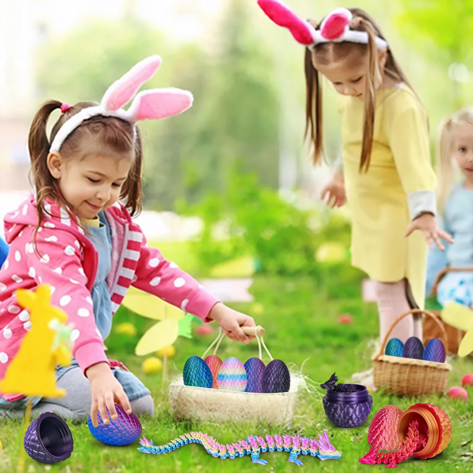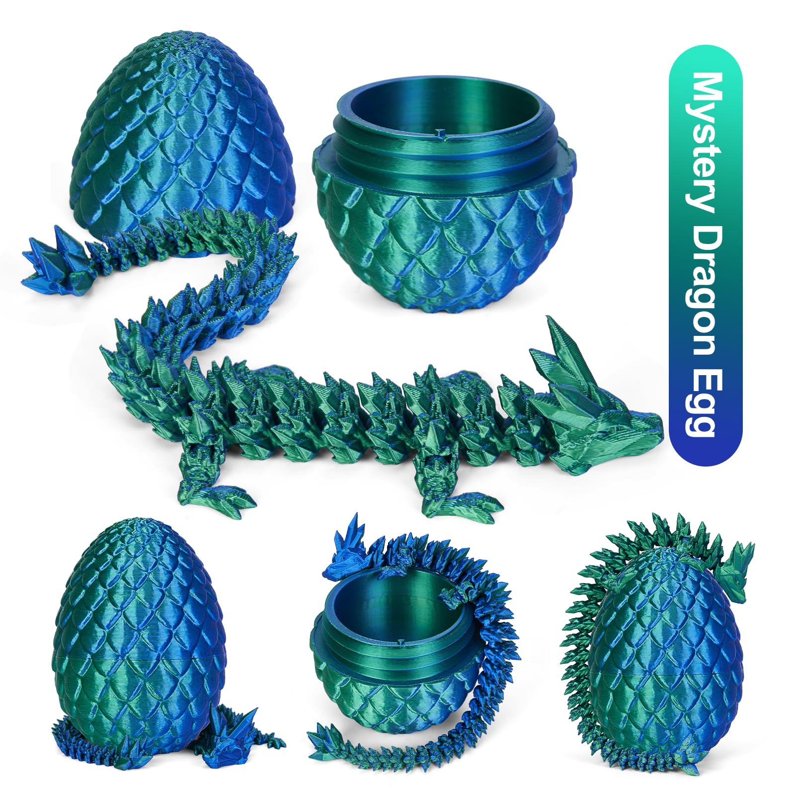 3D Printed Crystal Dragon Egg Toy – Articulated Fidget Dragon for Kids, Boys & Girls, Cool 3D Printer Dinosaur Egg Gift (A-Laser Green + Egg)