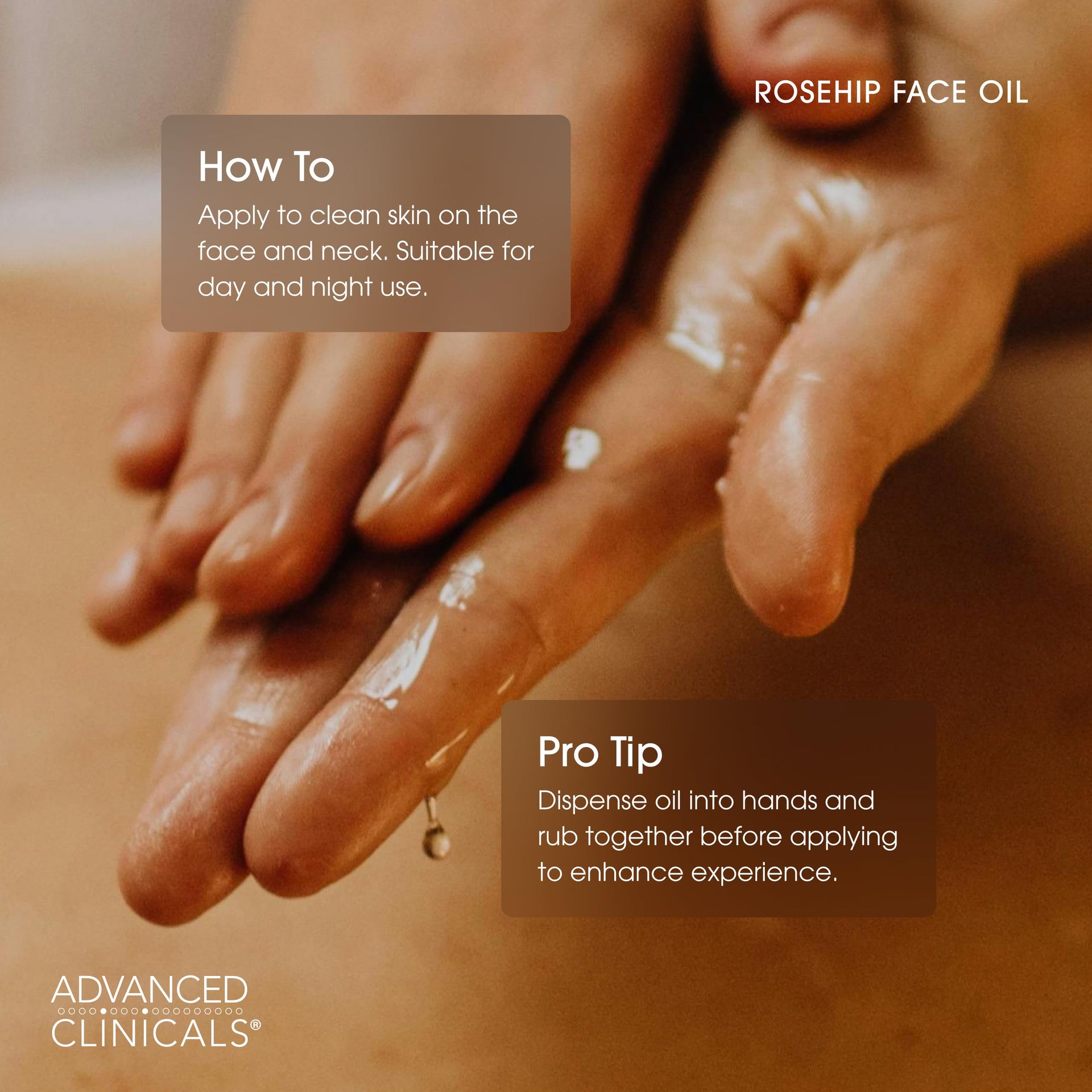 Advanced Clinicals Rosehip Oil Face Serum with Vitamin E & Botanicals – Moisturizes, Reduces Dark Spots, Wrinkles, Fine Lines, 1.8 fl oz