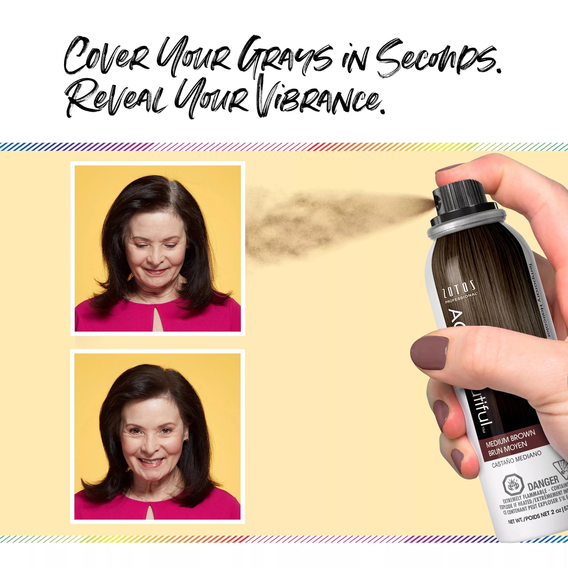 AGEbeautiful Root Touch Up Spray - Temporary Gray Concealer & Volumizer, Covers Thinning Hair, Water & Sweat Resistant, Medium Brown, 2 Fl Oz
