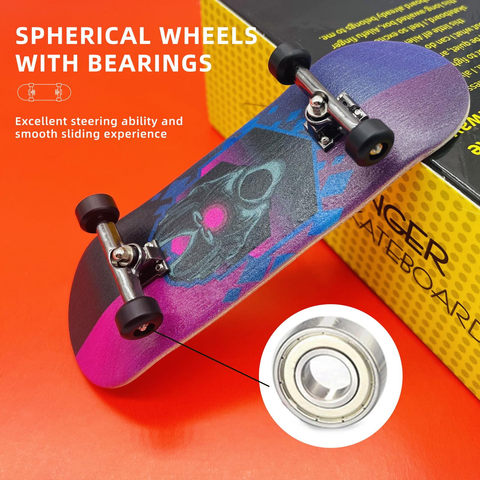 ALFAILEFU Pro Fingerboard 32mm Wooden Board Professional Finger Skateboard Trucks CNC Wheels with Bearings (Death)