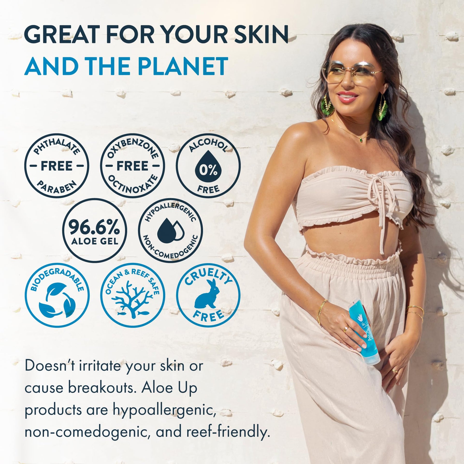 - ALOE UP: For four decades, Aloe Up has defined the field of luxury sun and skin care. We base all of our products with pure aloe vera gel. We pride ourselves in creating the most comfortable, clean, and effective skincare safe for people and the environment.