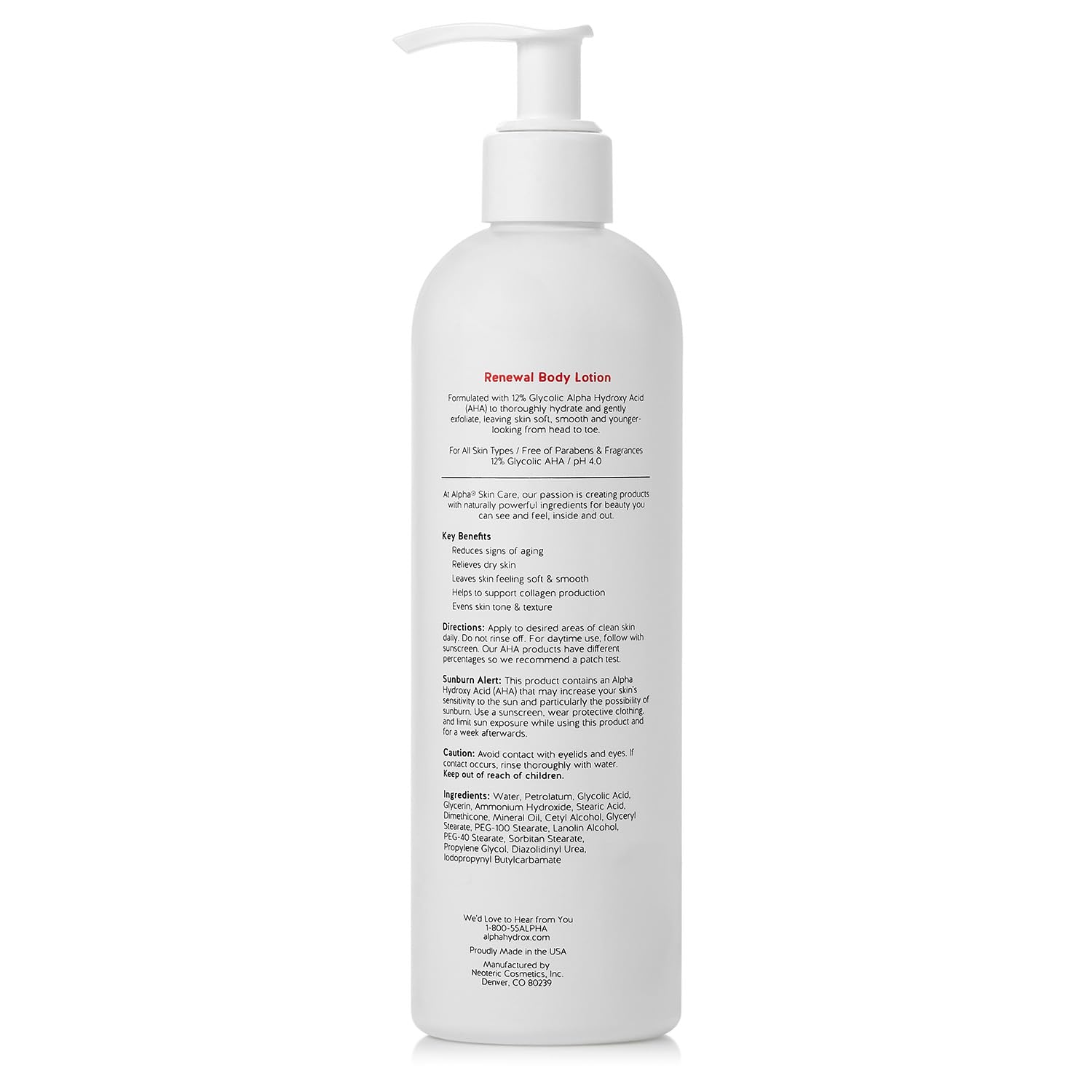 Alpha Skin Care Revitalizing Body Lotion 12% Glycolic AHA, Daily Moisturizer with Exfoliating & Hydrating Anti-Aging Formula, 12oz