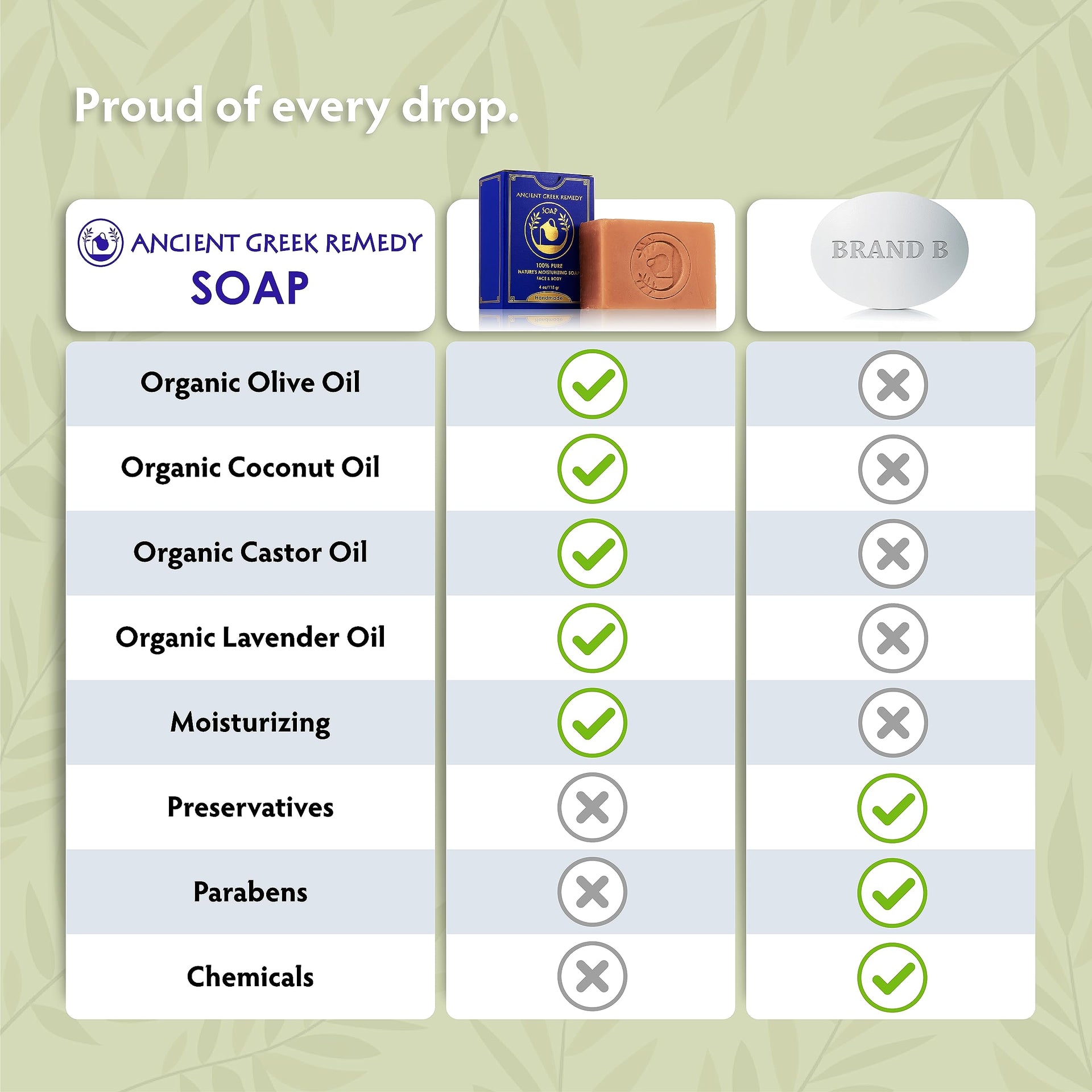 - INGREDIENTS YOU CAN TRUST - our soap bars are made of cold-pressed organic Olive oil, Coconut oil, Castor oil, Lavender oil, and natural sodium hydroxide.