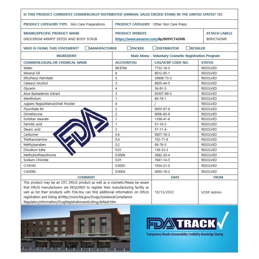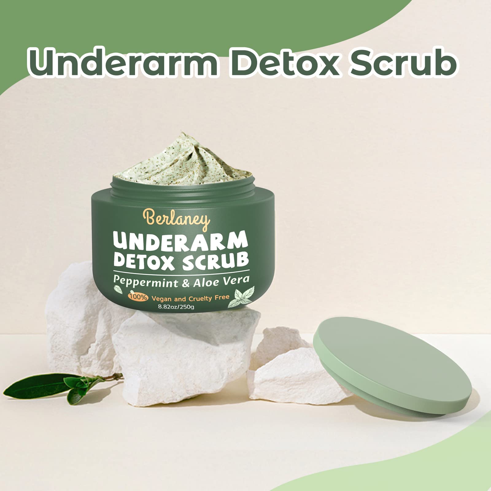 Armpit Detox Scrub 8.8oz – Peppermint, Aloe & Walnut Shell Powder, Deep Cleanse & Exfoliate Underarms, Legs, Feet, Hands, Body