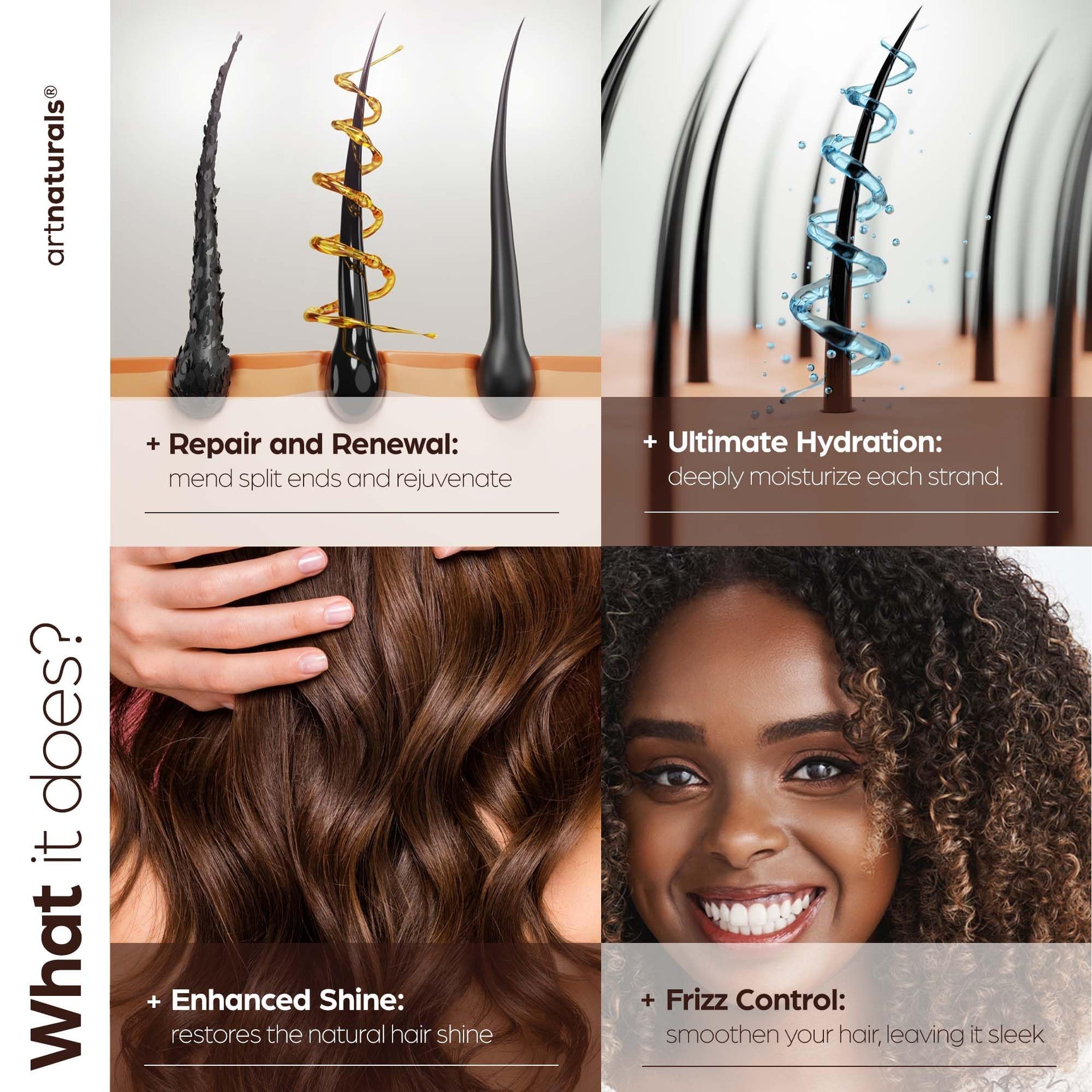 - HAIR GROWTH: A blend of Argan Oil, Aloe Vera, Rosemary and other ingredients that help cell renewal and healthy growth it revitalizes follicles and supports a healthy scalp and thicker, shinier hair.