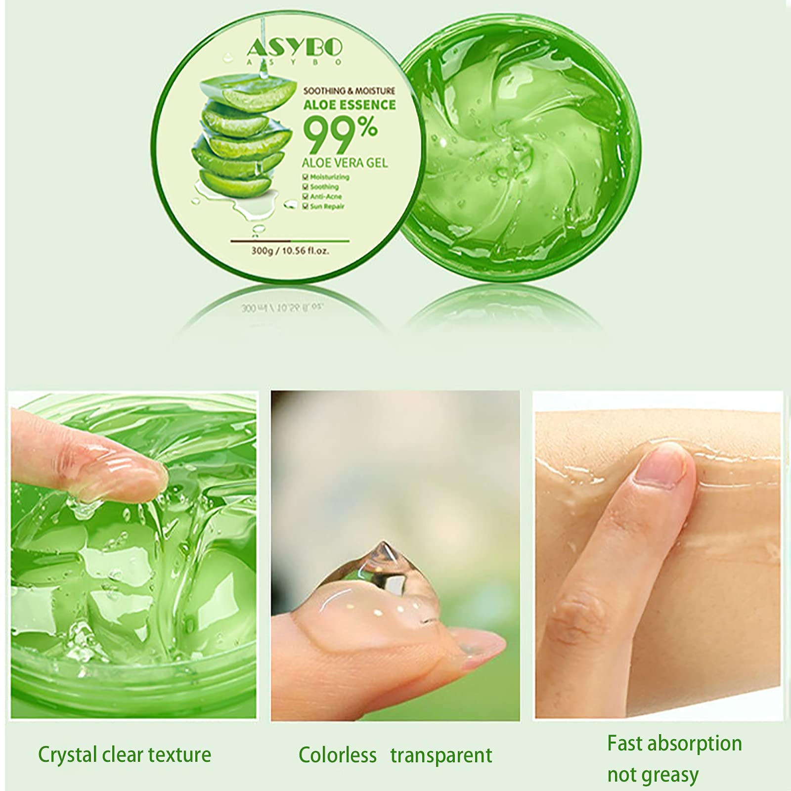 ASYBO 300 ML Natural Aloe Vera Gel -Organic Moisturizing Cream, Soothing and Hydrating, Sunburn and Scar Repair, Care for Face Body Hair