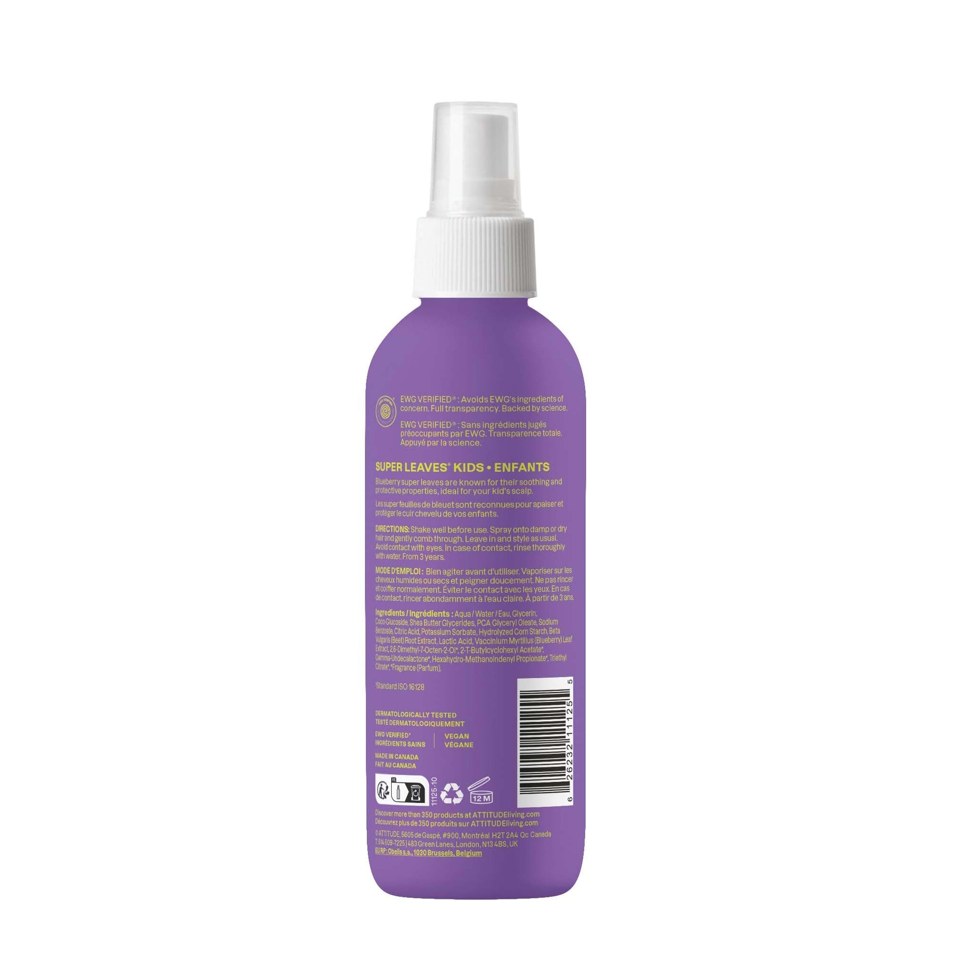 ATTITUDE Rinse-free Hair Detangler for Kids, EWG Verified Leave In Product, Plant- and Mineral-Based Ingredients, Vegan, Vanilla & Pear, 8 Fl Oz
