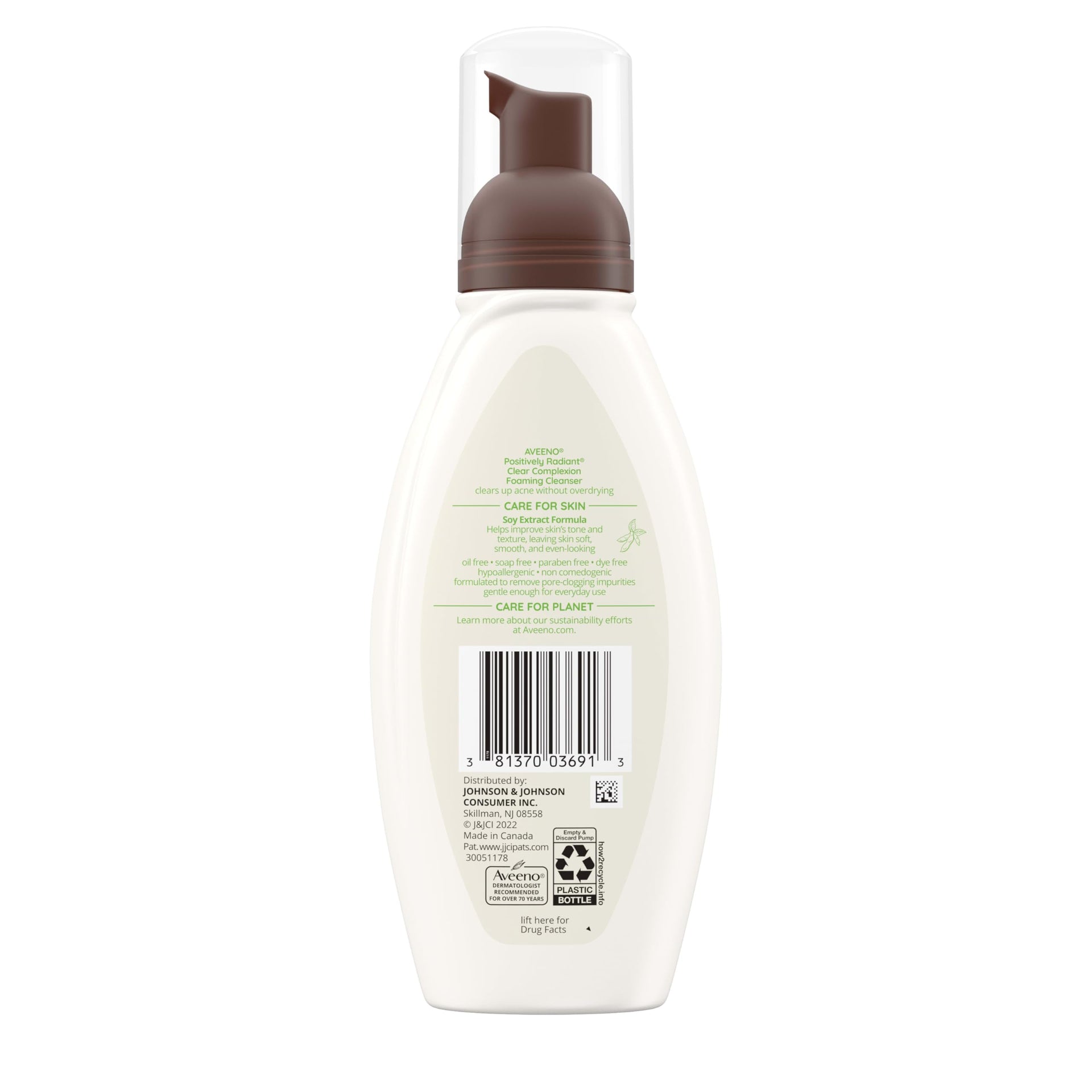 - Aveeno Positively Radiant Clear Complexion Foaming Cleanser for acne-prone skin gently cleanses uneven, dull skin to leave it feeling soft and smooth, making it the perfect addition to your daily skincare routine