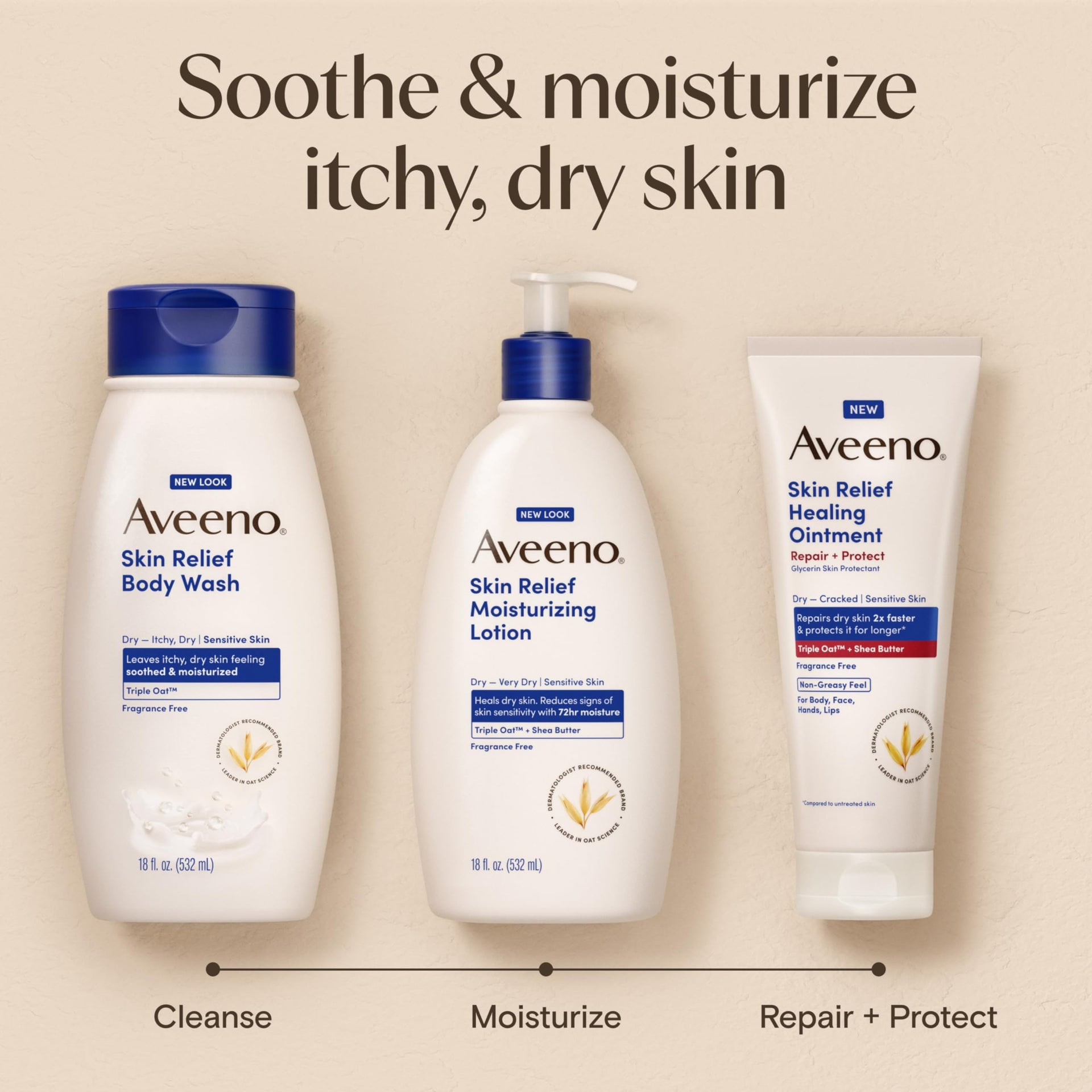 Aveeno Skin Relief Moisturizing Lotion for Very Dry, Sensitive Skin – Fast-Absorbing, Triple Oat & Shea, Fragrance-Free, 18 fl. oz