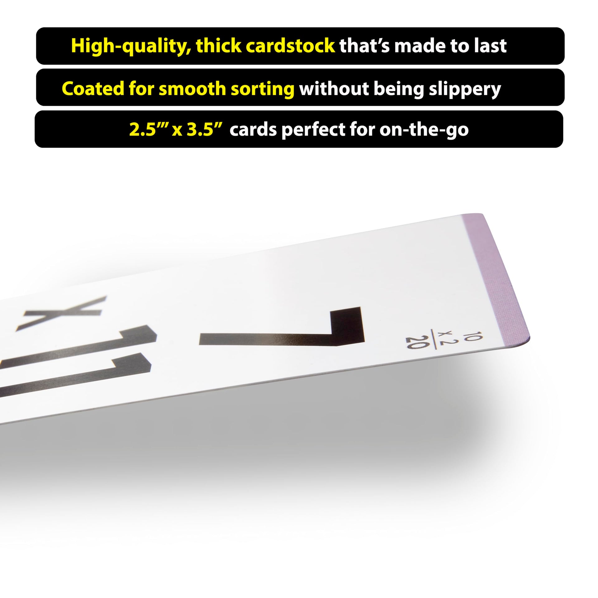 - ✅ Premium Cards - Have bold, large print with problems on one side and solutions on the other. Cards also include color coded multiplicands and divisors for targeted practice.The travel size packs of laminated math flashcards are made from high quality card stock and come in extra-sturdy carton for storage. Each card includes one rounded corner for faster sorting and orientation.