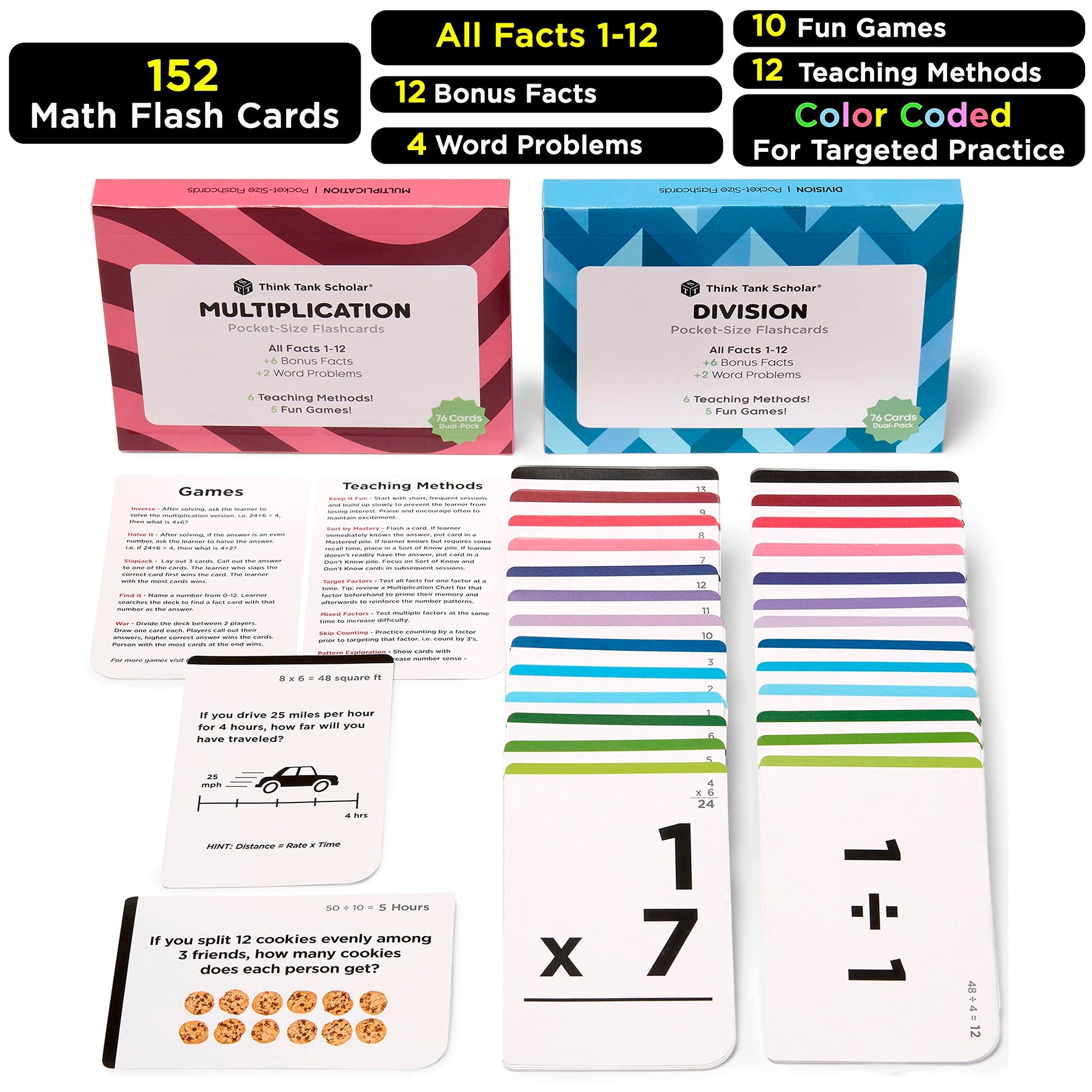- ✅ 300 Facts - Multiplication & Division Flash Cards for Third Grade / Fourth Grade / Fifth Grade / Sixth Graders learning all facts 1-12 for multiplication & division, +12 bonus facts and +4 word problems. Comes with twelve (12) teaching methods and twelve (12) fun learning games.
