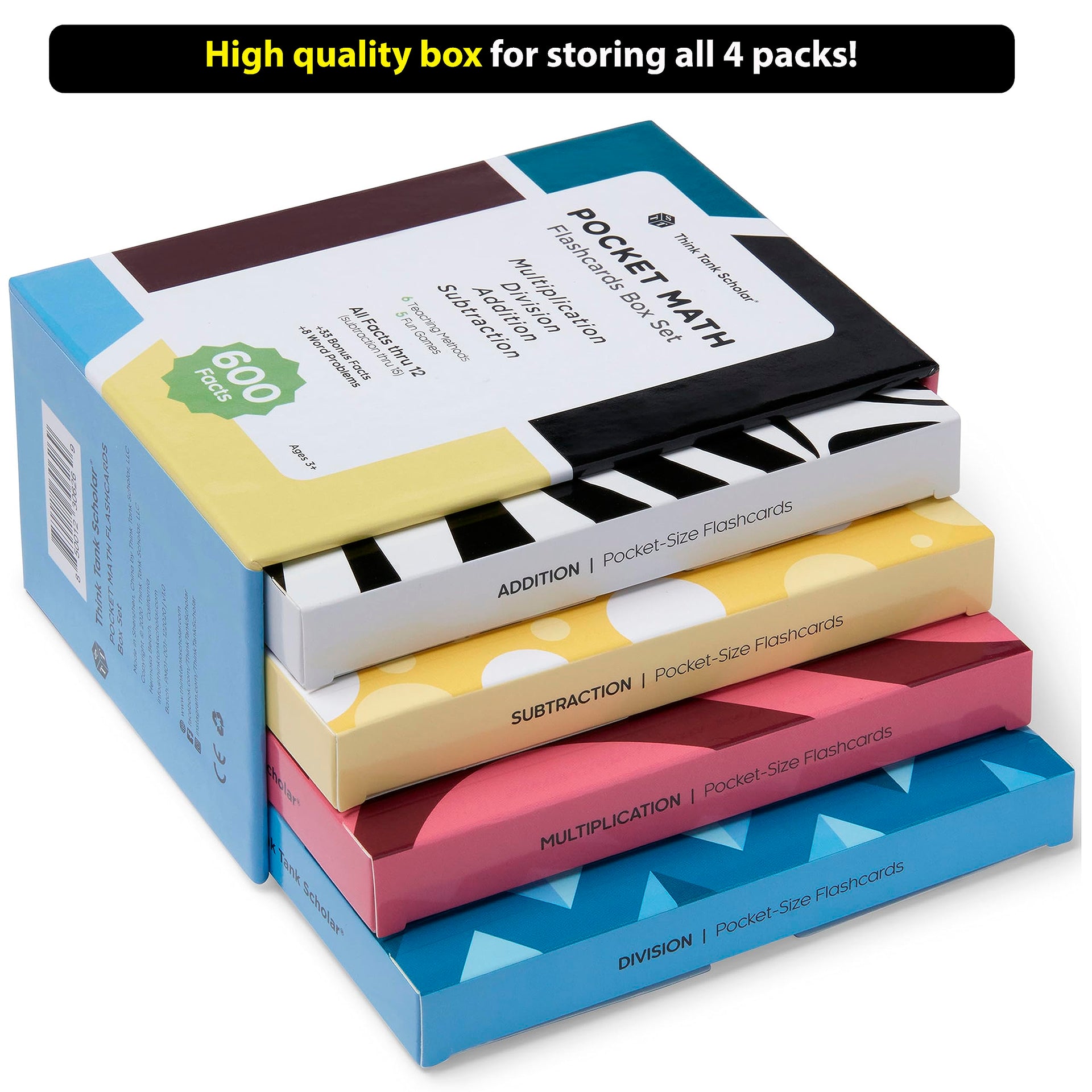- ✅ Premium cards have bold, large print with problems on one side and solutions on the other. Cards also include color coded addends, minuends, multiplicands and divisors for targeted practice.The travel size packs of laminated math flashcards are made from high quality card stock and come in extra-sturdy carton for storage. Each card includes one rounded corner for faster sorting and orientation.