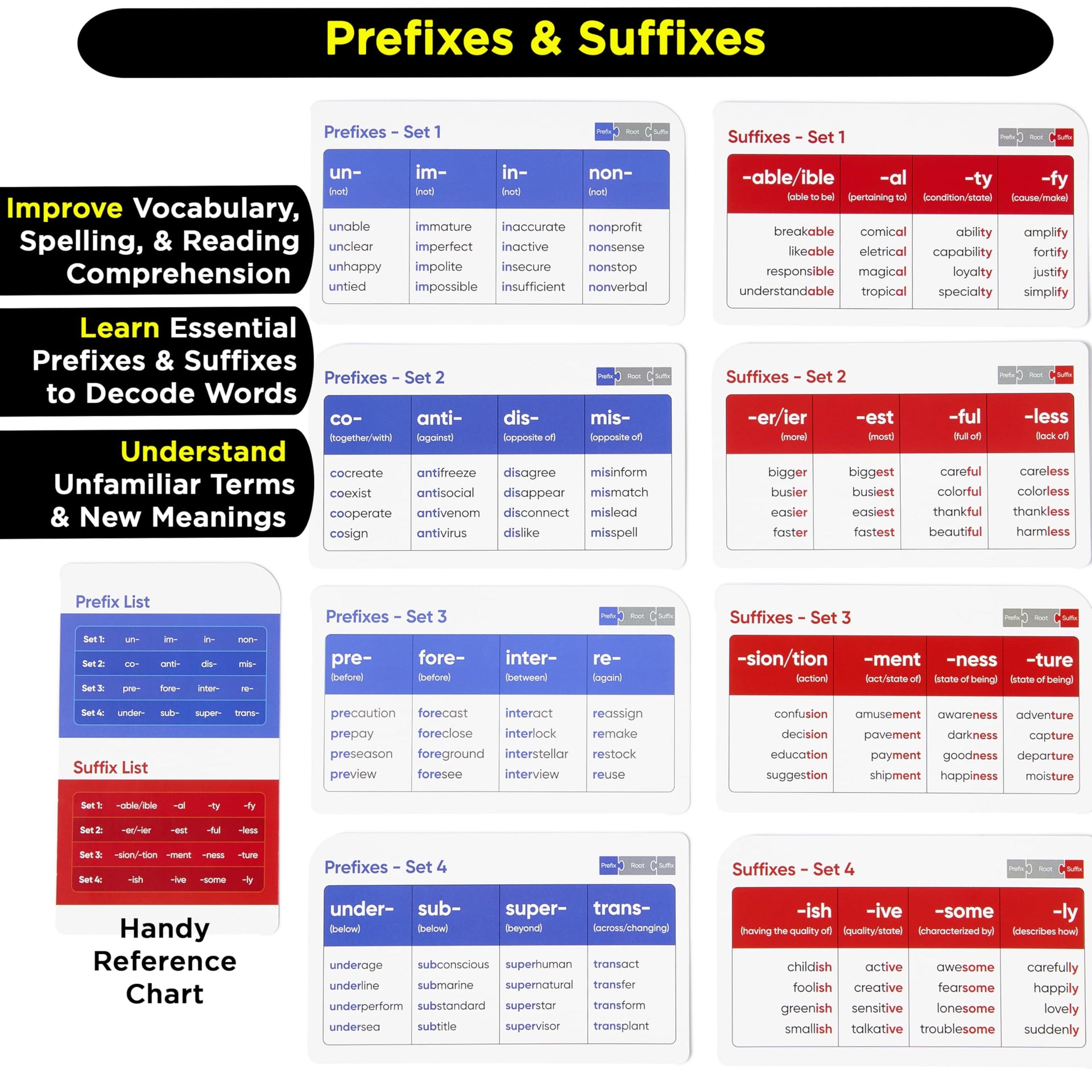 Phonics & Vocabulary Flash Cards – 1000+ Words, Prefixes, Suffixes, CVC, Games & Visuals – Ages 4–8, Pre-K to 3rd Grade