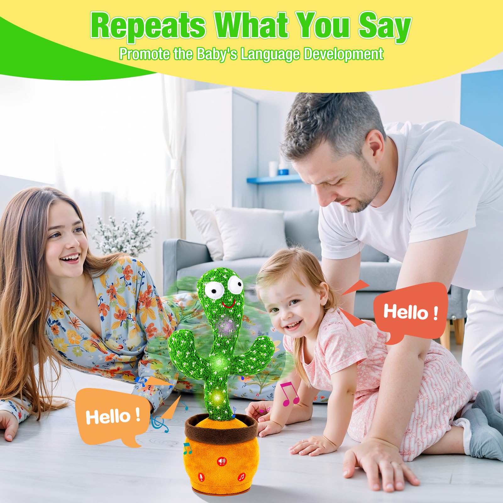 - TALKING CACTUS TOY FOR JOYFUL PLAYTIME - Want more fun interactive time with your little one? This talking cactus toy delivers: it records & repeats your chats, and its charming design + processed sound pull them right in. More playful exchanges, more laughs, and ordinary moments become happy, engaging shared time