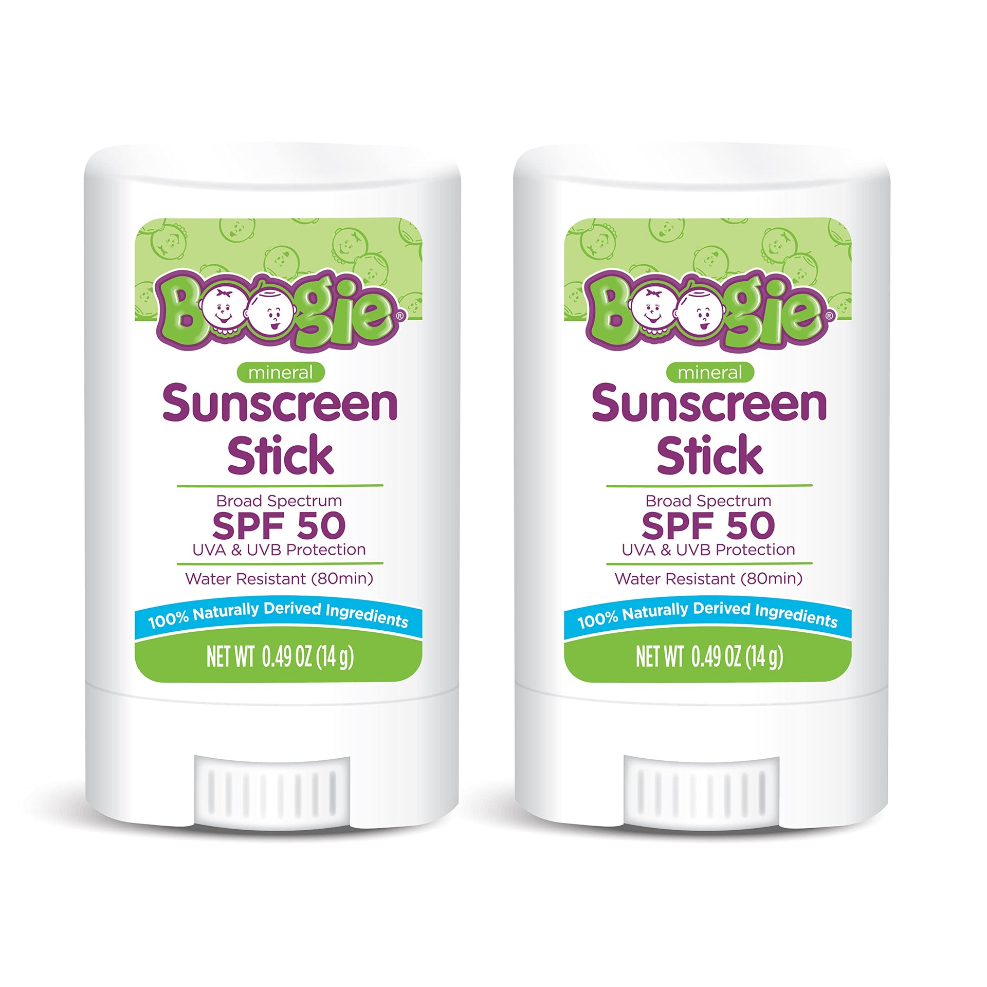- BROAD SPECTRUM MINERAL SUNSCREEN STICK: Boogie Mineral Sunscreen Stick provides broad spectrum SPF 50 to help prevent sunburn and protect sensitive skin from harmful UVA and UVB rays. It is water resistant for up to 80 minutes.