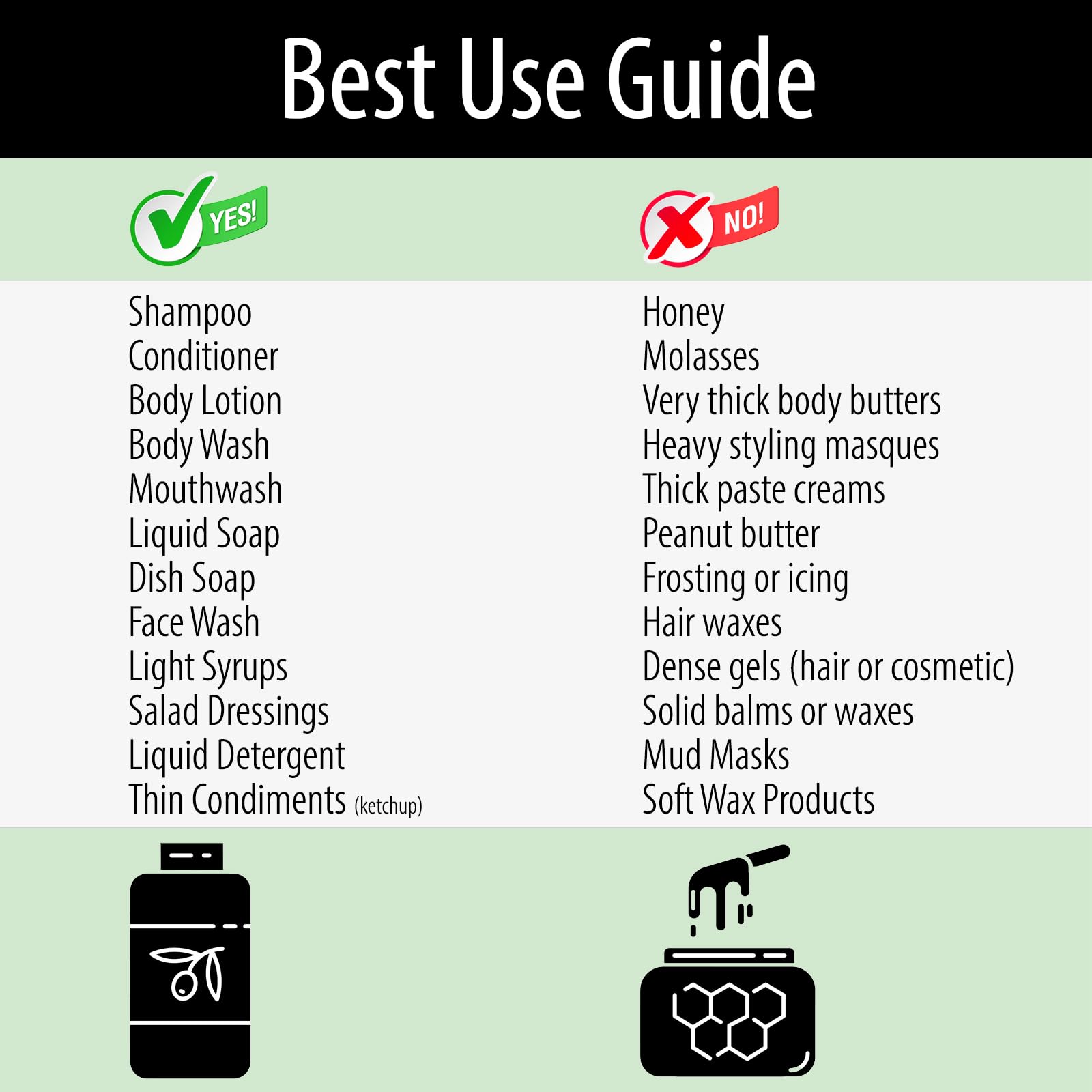 - Precision: With precise dosing for every pump, you’ll always get the perfect portion to make your product last longer; Protect your product by keeping water out of the bottle.