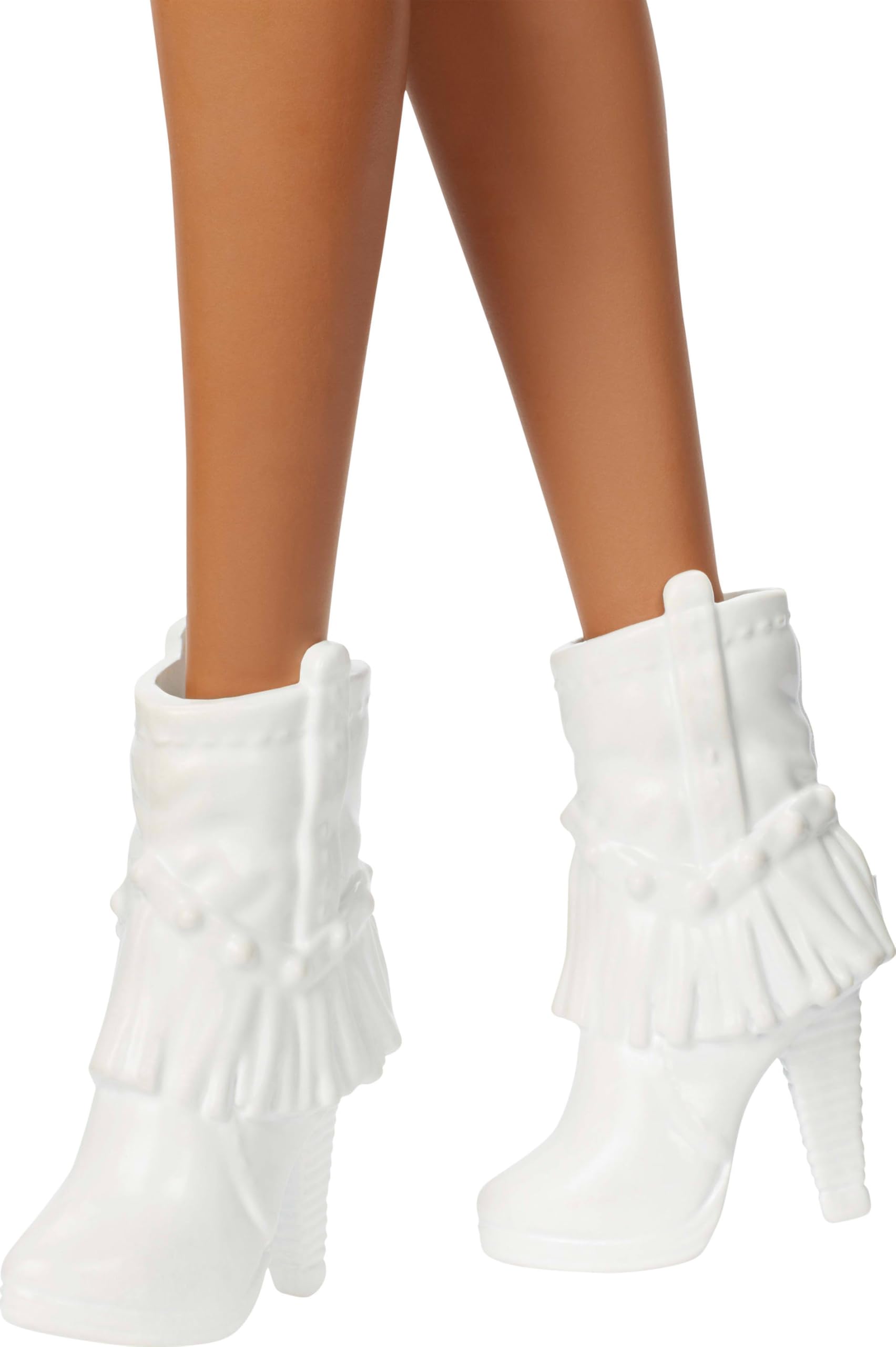 - Barbie doll's loose black curls are topped with a white cowboy hat. With matching boots at her feet, these western accessories show off her personality in such a fun way