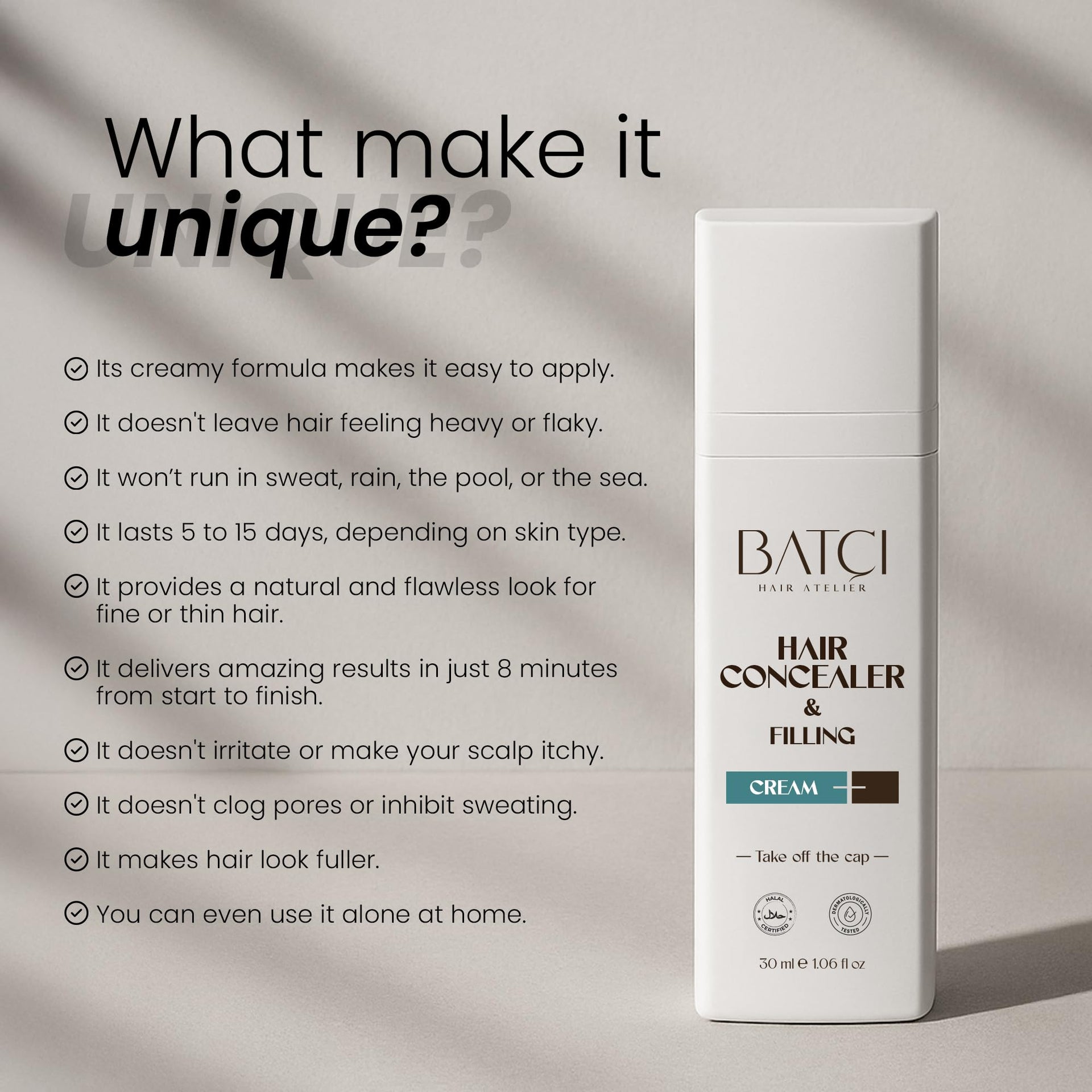 BATCI Hair Concealer for Thinning Hair – Root Touch Up & Filler Cream for Men & Women – Instantly Covers Bald Spots & Gray Roots, 30ml