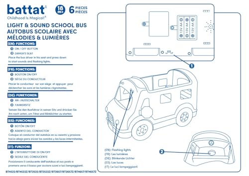 Battat – Light – Up Yellow Bus – 5 Toy Figures – Realistic Sounds – Folding Stop Sign – 18+ Months – Light & Sound School Bus