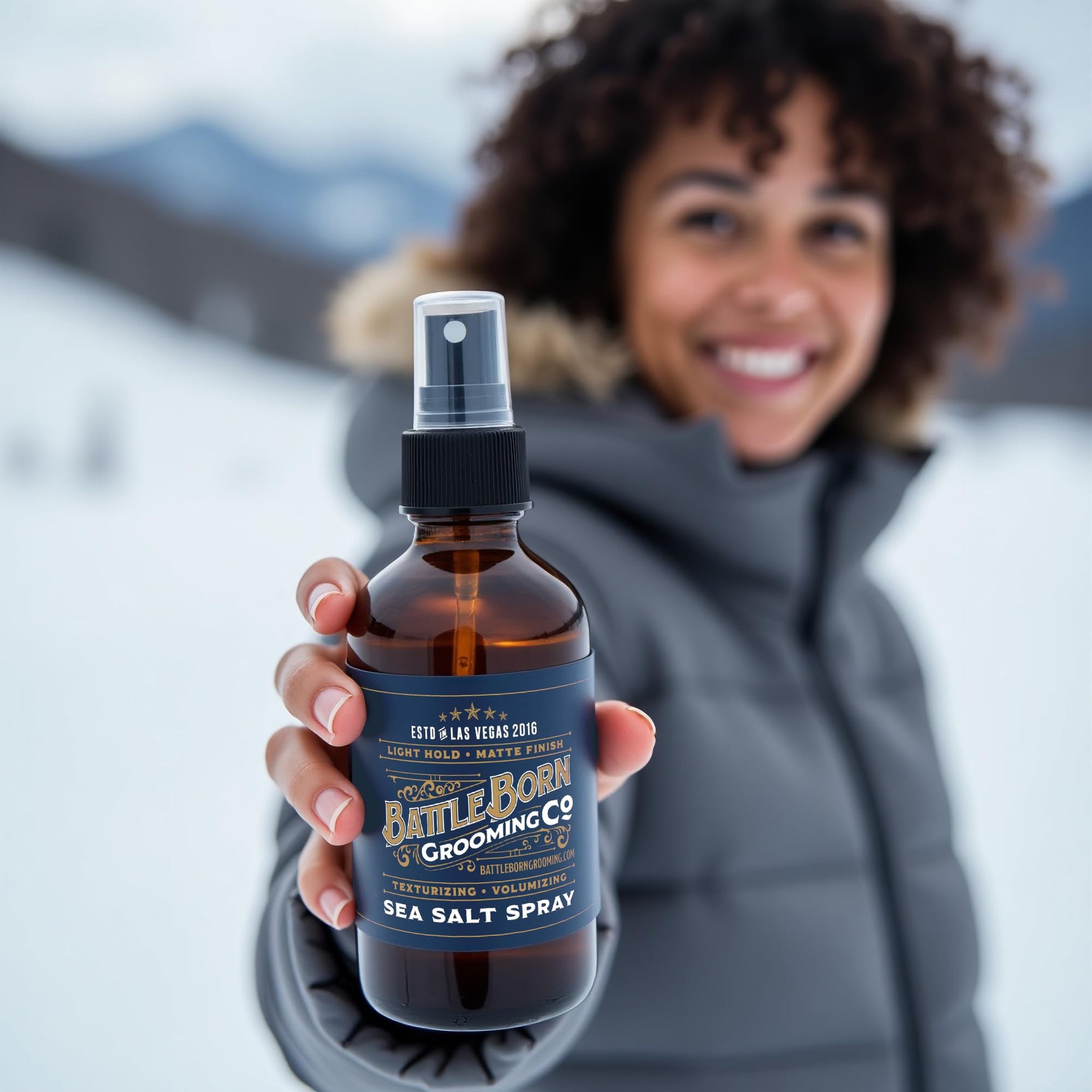 Battle Born Grooming Co Sea Salt Spray (Unscented, 8 fl oz) – Natural Vegan Texturizing Spray for Beach Waves, Volume & Thickness – Unisex
