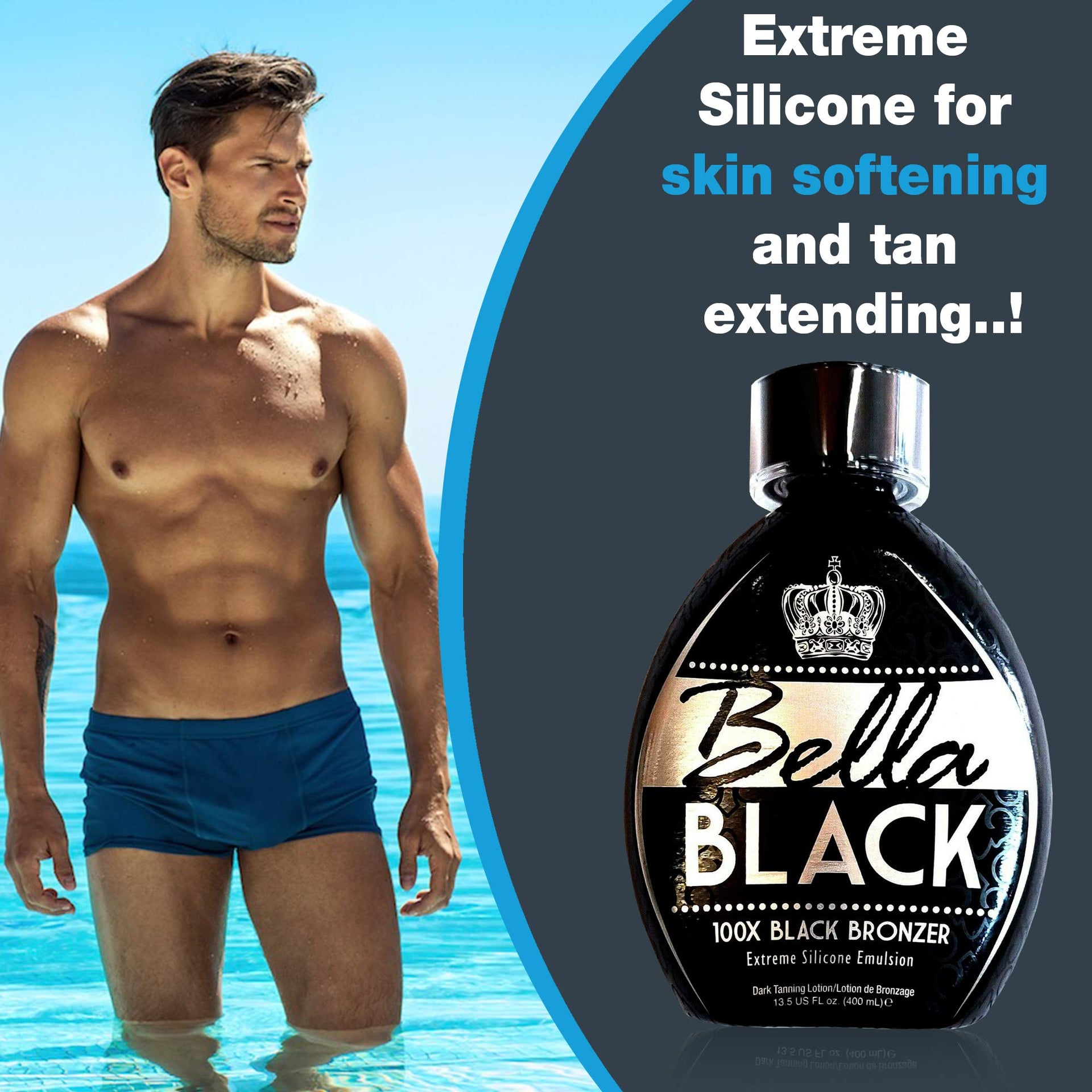 Bella Black 100X Dark Bronzer Tanning Lotion – Indoor Tanning Bed Lotion with Silicone Emulsion & Banana Fruit Extract – Instant Deep Tan, 13.5oz