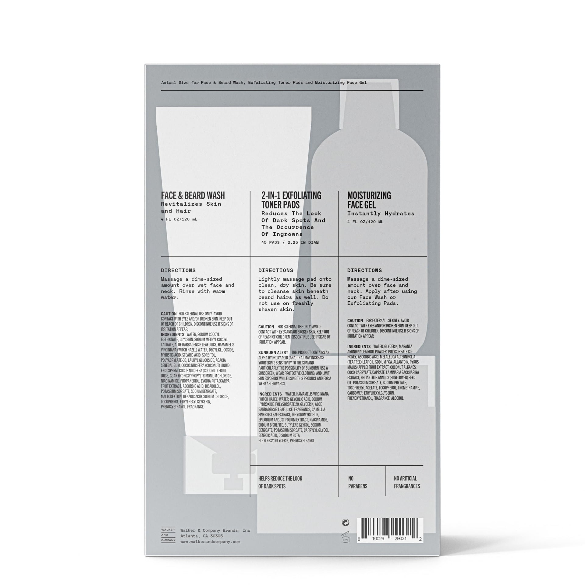 - Complete Skin Care Set - The Bevel Skin Care Set for Men is a comprehensive package that includes a face wash with Aloe Vera and Witch Hazel, glycolic acid exfoliating pads, and a lightweight face moisturizer. It provides everything you need for a complete skin care routine.
