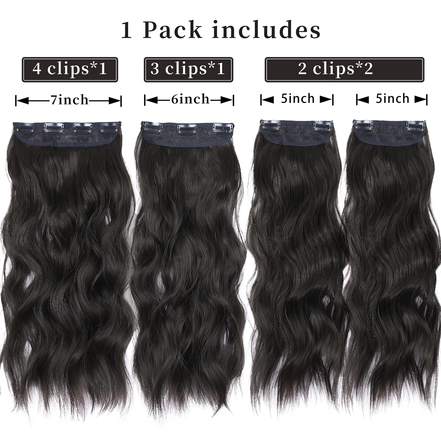 - 【Package Contents】 4PCS clip in hair extensions of 20 inches 180g in total. Each package includes: 1 piece of 7 inches wide weft with 4 clips; 1 piece of 6 inches wide weft with 3 clips; 2 pieces of 5 inches wide weft with 2 clips. You can choose the number of pieces to wear according to your needs.