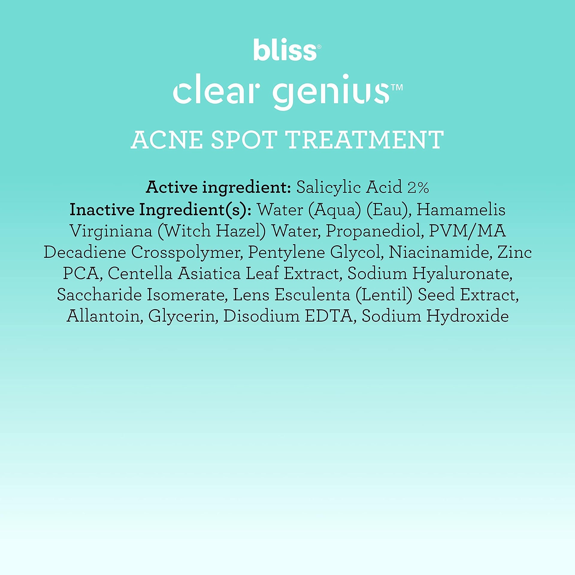 Bliss Clear Genius Acne Spot Treatment – Maximum Strength 2% Salicylic Acid Shrinks Blemishes – Clean, Vegan, Cruelty-Free, 0.5 Fl Oz