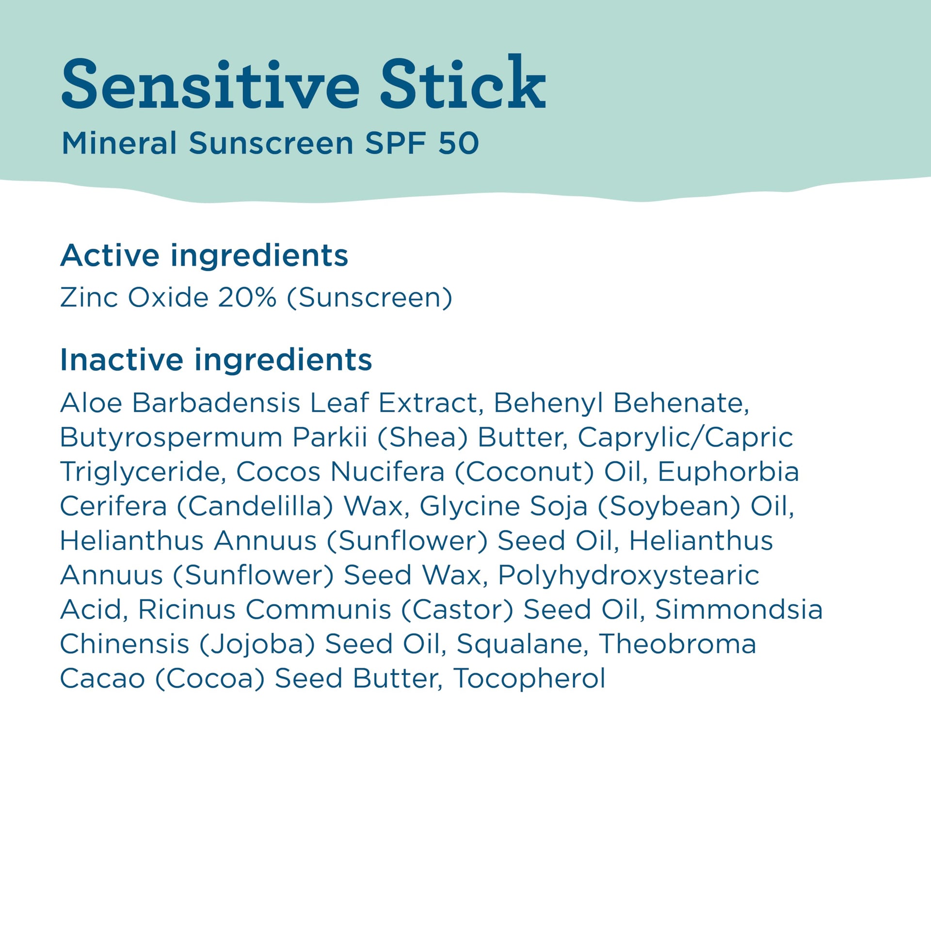 - ZINC OXIDE-ONLY SUNSCREEN - Protect sensitive skin with Blue Lizard Sensitive Mineral Sunscreen Stick SPF 50. Formulated with Zinc Oxide, it contains no harsh chemical active ingredients that might irritate sensitive skin.