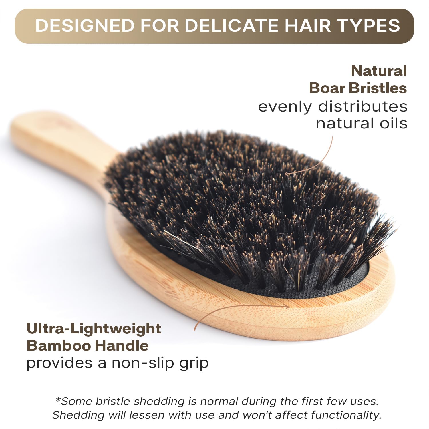 - NATURAL HAIR BRISTLES FOR GENTLE DETANGLING: Designed with premium soft boar bristles, this 100% boar bristle brush effortlessly glides through your hair to detangle knots without causing breakage. Enjoy ๐ฌ๐ฆ๐จ๐จ๐ญ๐ก, ๐ ๐ฅ๐จ๐ฌ๐ฌ๐ฒ ๐ก๐๐ข๐ซ with each stroke.
