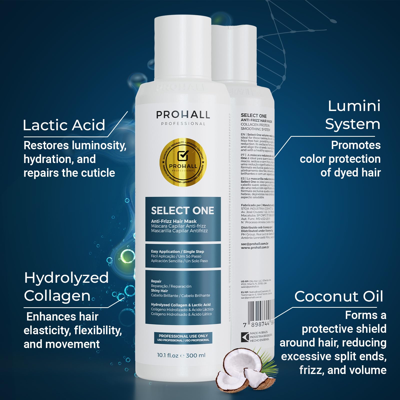 PROHALL Select One Brazilian Keratin Treatment 10.1oz | Formaldehyde-Free Blowout Complex | Smooth, Straighten & Repair Hair at Home