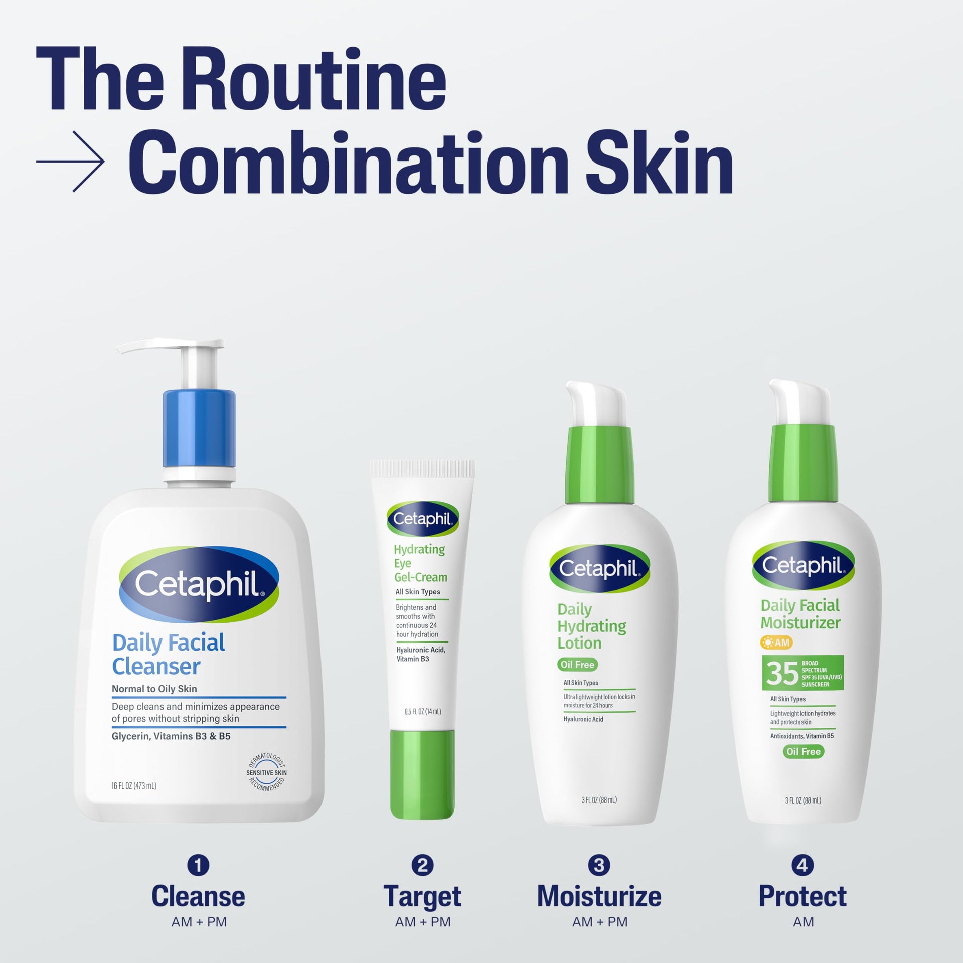 Cetaphil Daily Hydrating Face Lotion with Hyaluronic Acid, 24-Hour Moisture for Combination Skin, Fragrance-Free & Non-Comedogenic, 3 fl oz