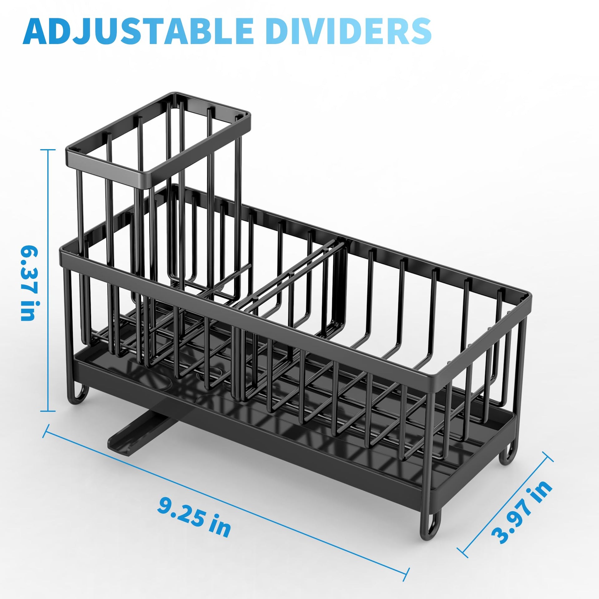 Cisily Black Sponge Holder for Kitchen Sink, Sink Caddy Organizer with High Brush Holder, Kitchen Countertop Organizers and Storage Essentials, Rustproof 304 Stainless Steel, Soap Dispenser Organize