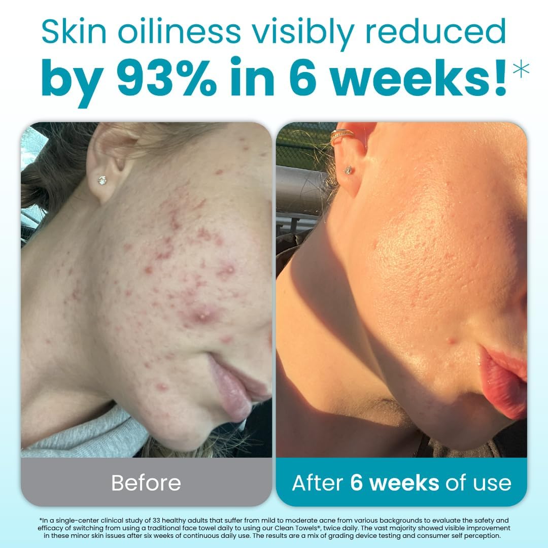 Clean Skin Club Blemish Control XL Towels® – Compostable Face Wipes for Oily & Sensitive Skin, Light Exfoliation, Makeup Removal, 50 Count