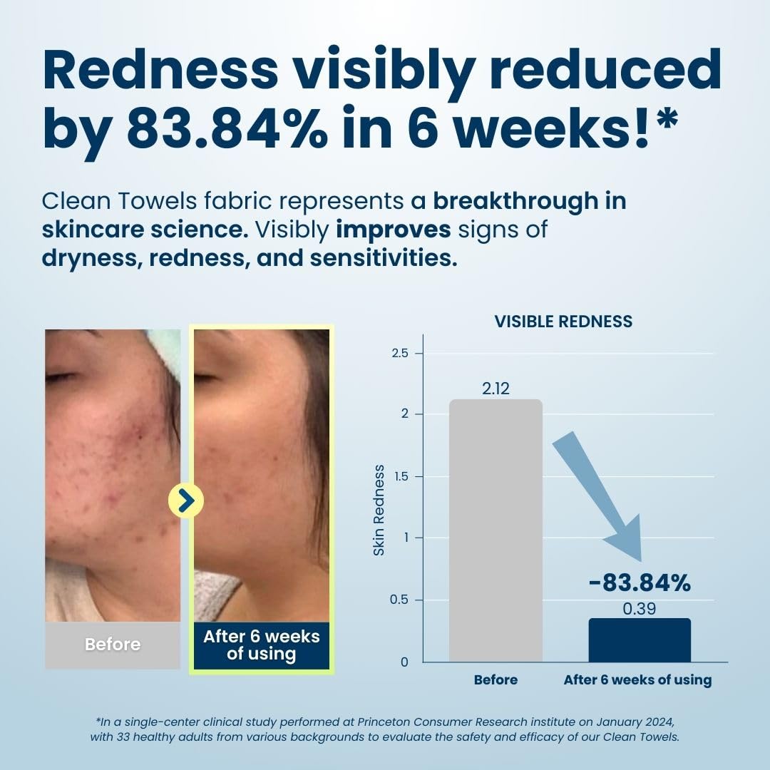 - Always have a clean, bacteria free towel for drying your face. Clinically shown to help individuals achieve visibly clearer skin, less irritation, and to reduce the appearance of redness