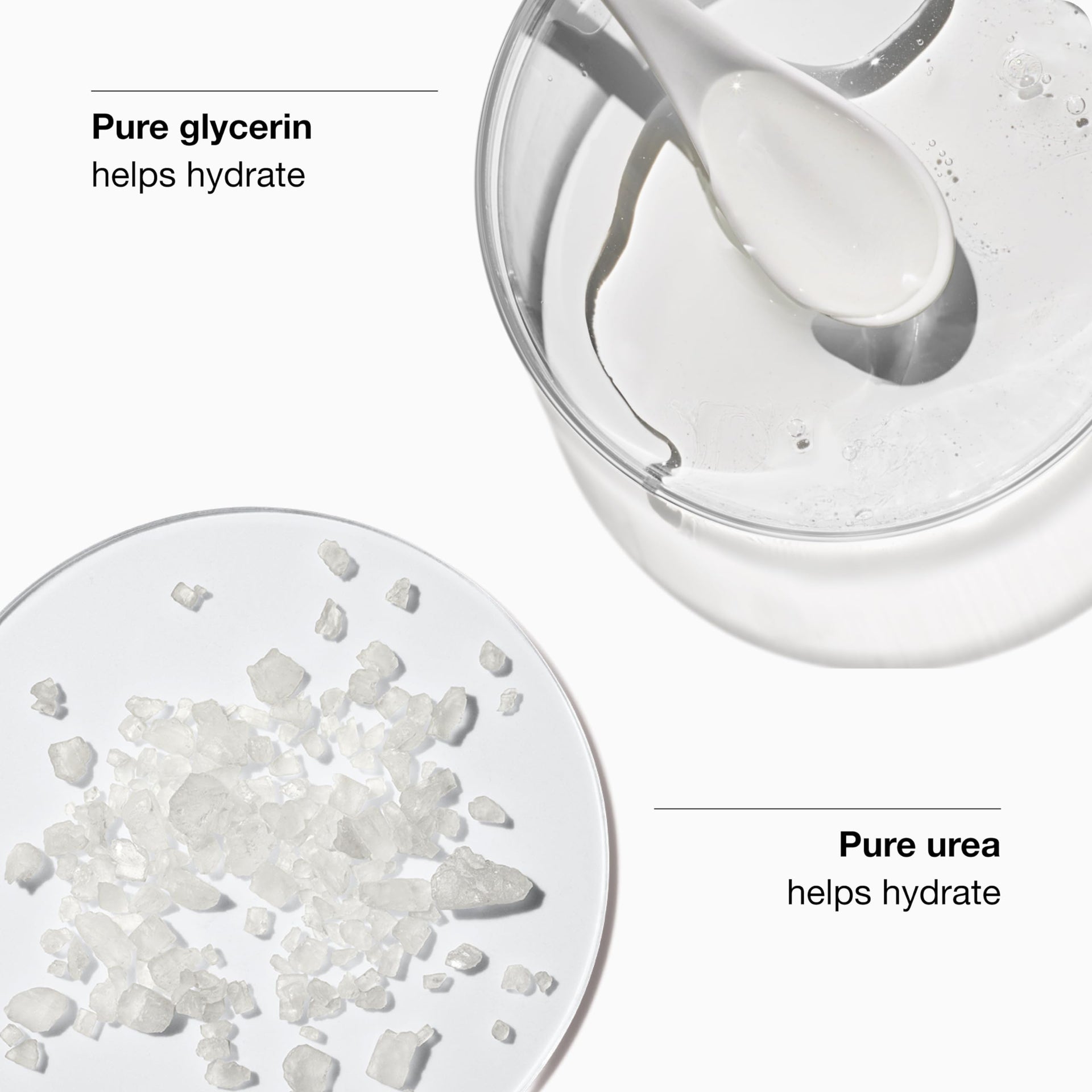 - PURE GLYCERIN + PURE UREA HELP BOOST HYDRATION: Glycerin helps bind and retain moisture in skin. Urea helps hydrate.