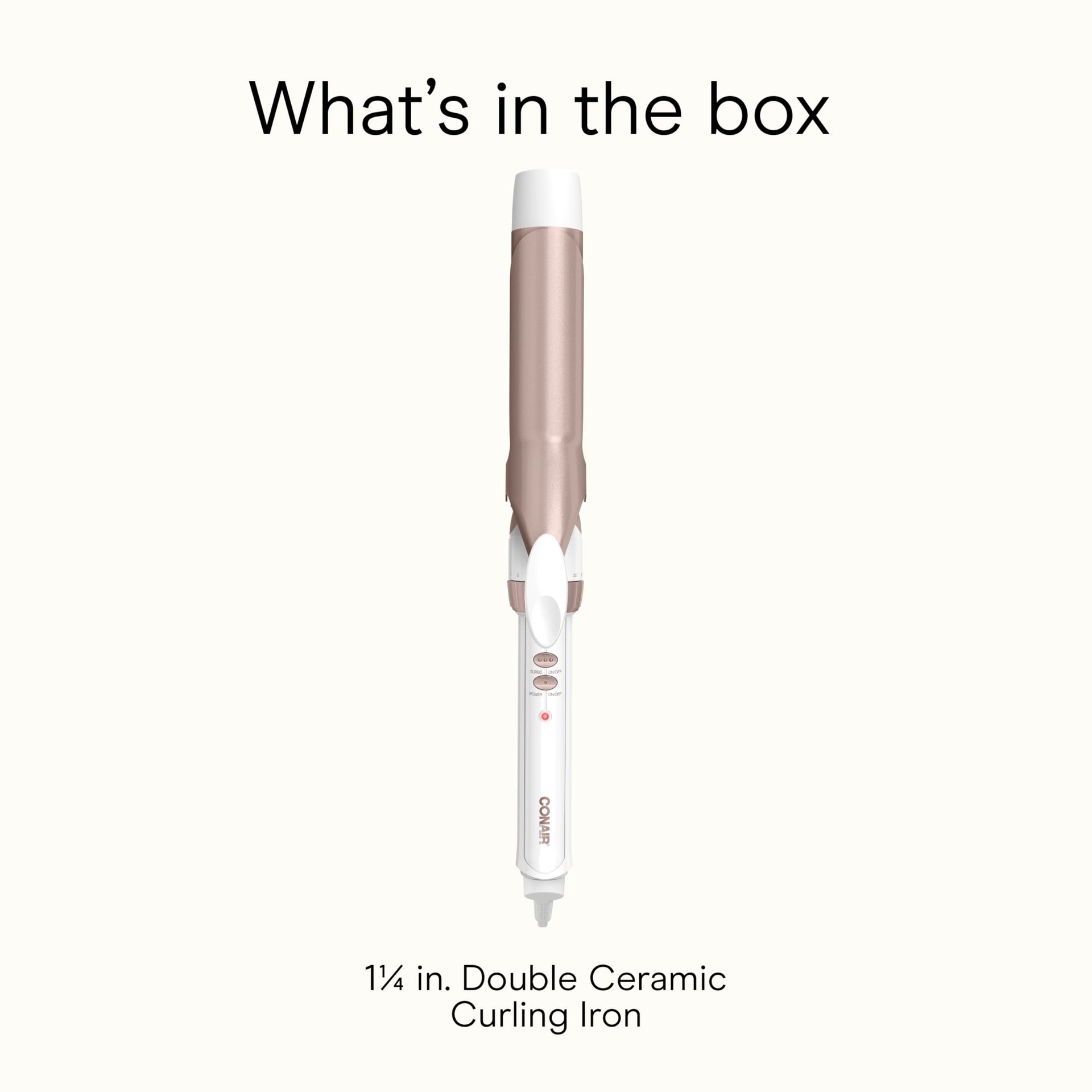 Conair Double Ceramic 1-1/4 Inch Curling Iron, 1.25-Inch Barrel Creates Loose Curls, Hair Curler for Use on Medium and Long Hair, White