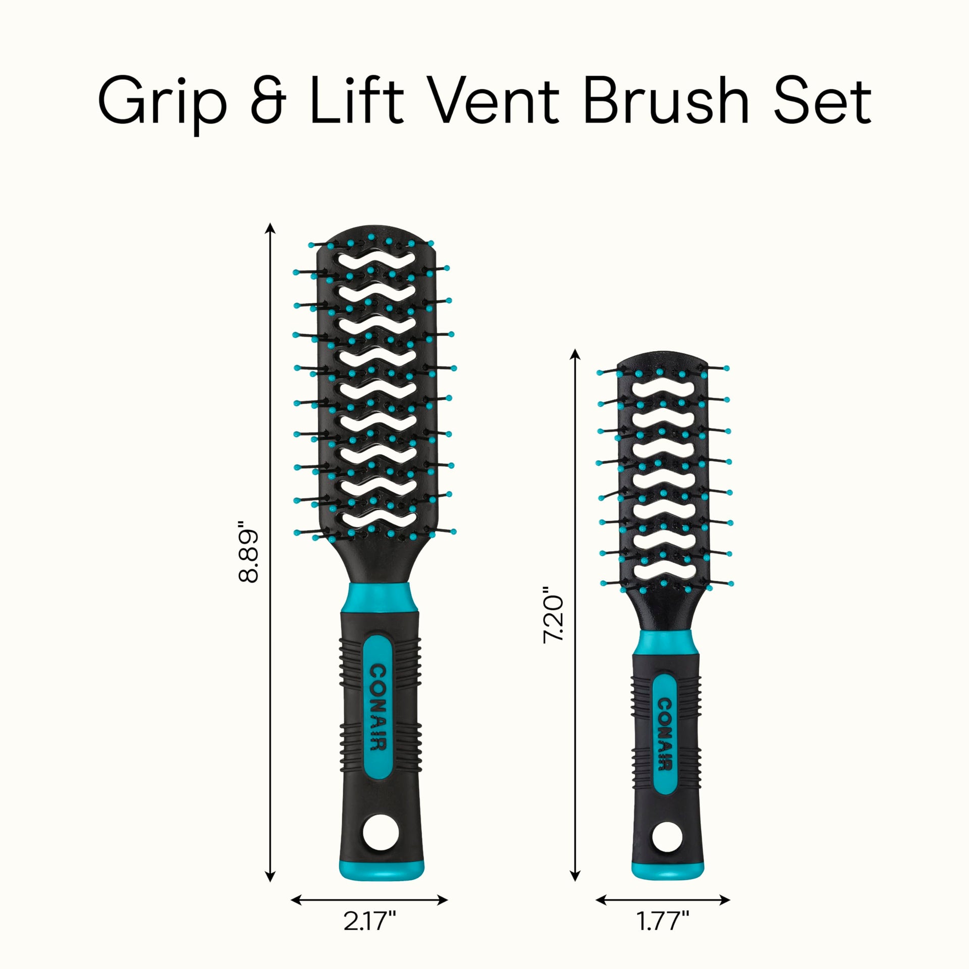 Conair Grip & Lift Vent Hairbrush 2PK, Full-Size and Mid-Size Brush Set, Nylon Bristle Hairbrushes for Blowout Styling, Value Pack