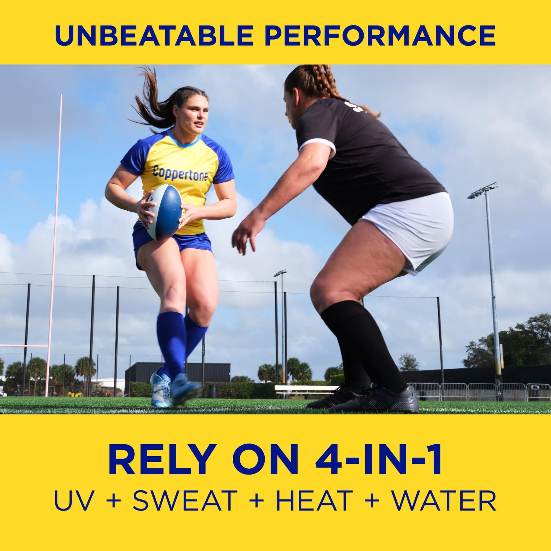 Details: Whichever outdoor activity you’re passionate about, Coppertone Sport Sunscreen Spray is on your team. Offering four-in-one protection, this body sunscreen spray SPF 50 stops up to 98 percent of UVA/UVB rays while resisting sweat, heat and water. Designed to stay on strong, this high-performance spray sunscreen SPF 50 protects you from the sun with a durable and water resistant sunscreen formula (80 minutes). This Coppertone spray sunscreen has a continuous sprayer for application on any angle and a lightweight sunscreen formula that leaves a breathable feeling on your skin. Each sunscreen Coppertone creates follows a tradition of trusted, quality sun protection products. Coppertone has been providing continuous innovation for more than 75 years, and is voted the most trusted sunscreen brand.(1) Depend on this tough sport sunscreen spray during any outdoor activities, whether you’re getting out for a work day, heading to the big game or enjoying an afternoon of fun in the sun. This bulk sunscreen pack includes three 5.5 ounce bottles of Coppertone Sport Sunscreen Spray SPF 50. Use and reapply this spray on sunscreen as directed. (1)Voted most trusted sunscreen brand by American shoppers based on the 2024 BrandSpark American trust study.