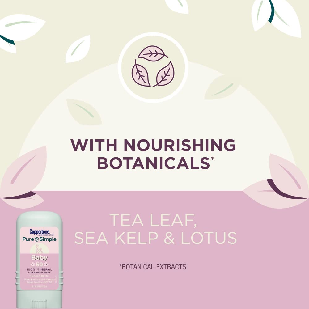 Coppertone WaterBabies SPF 50 Baby Sunscreen Spray 6oz + Pure & Simple Mineral Sunscreen Stick SPF 50 Tear-Free, Hypoallergenic
