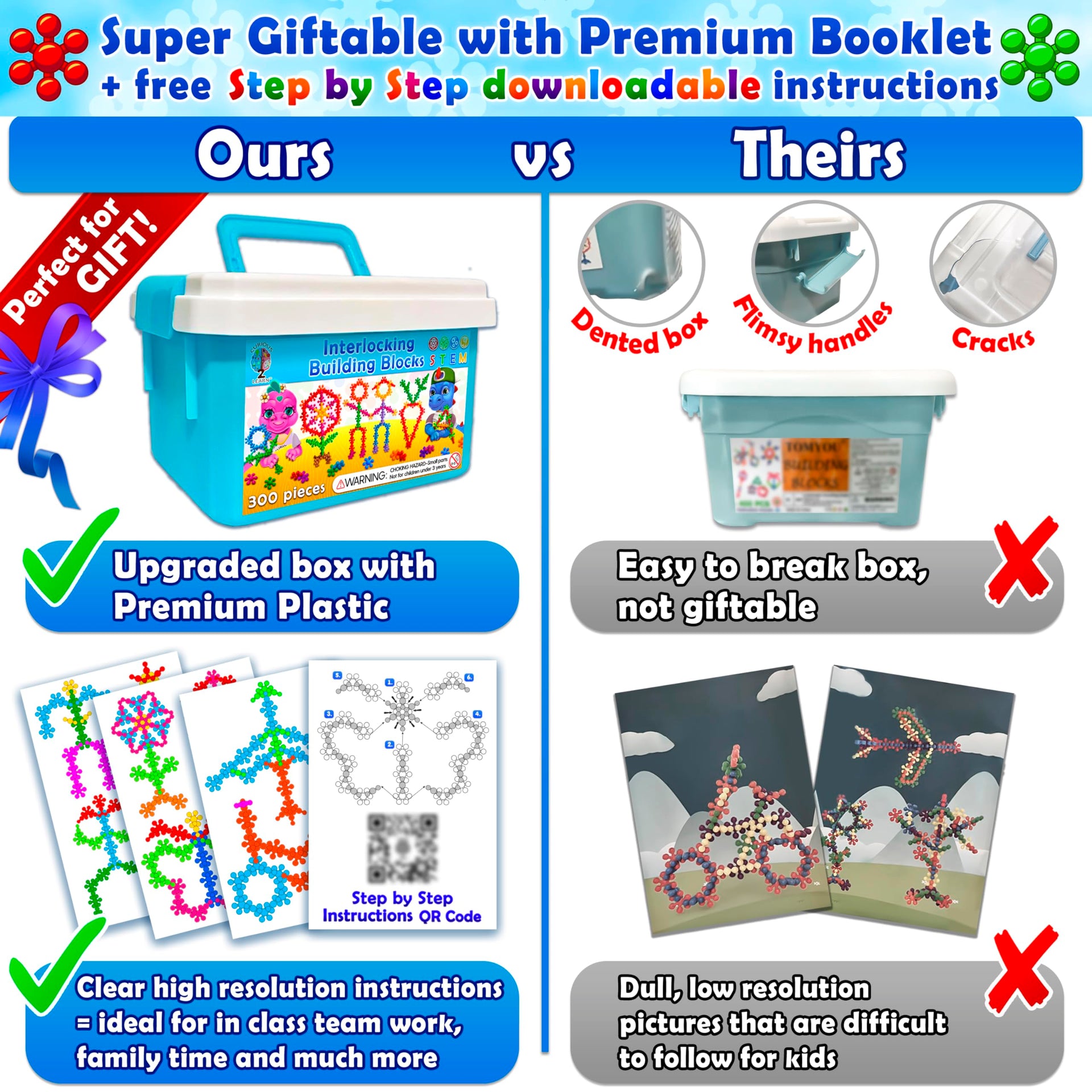 Curious 2 Learn 300-Pc Building Blocks Set – STEM Educational Toys, Interlocking Discs for Boys 4-5, Birthday Gift for Creativity