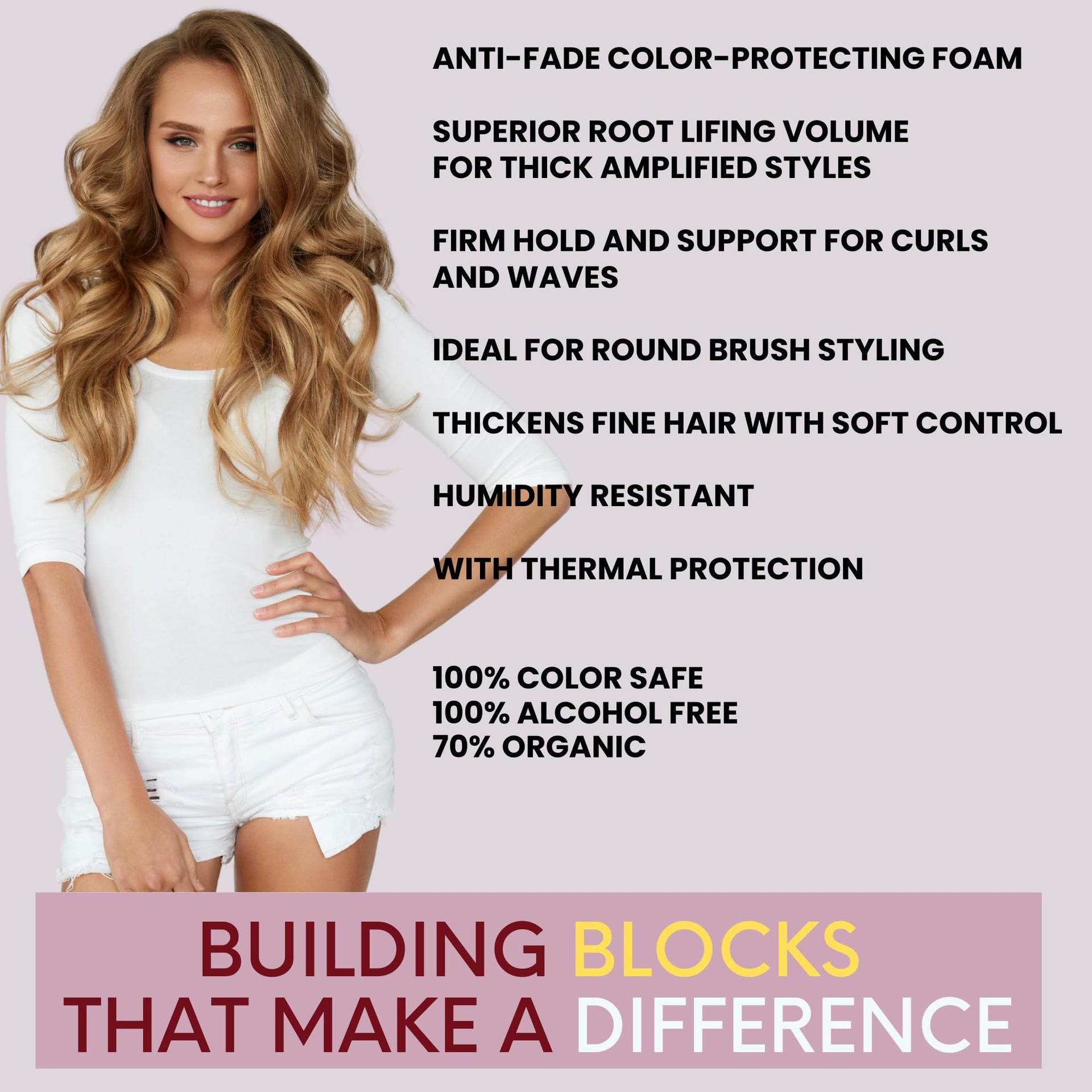 DermOrganic Volume Foam Mousse Firm Hold - Root Lift, Curl Support, Thicker Hairstyles, Alcohol-Free, 5.1 oz