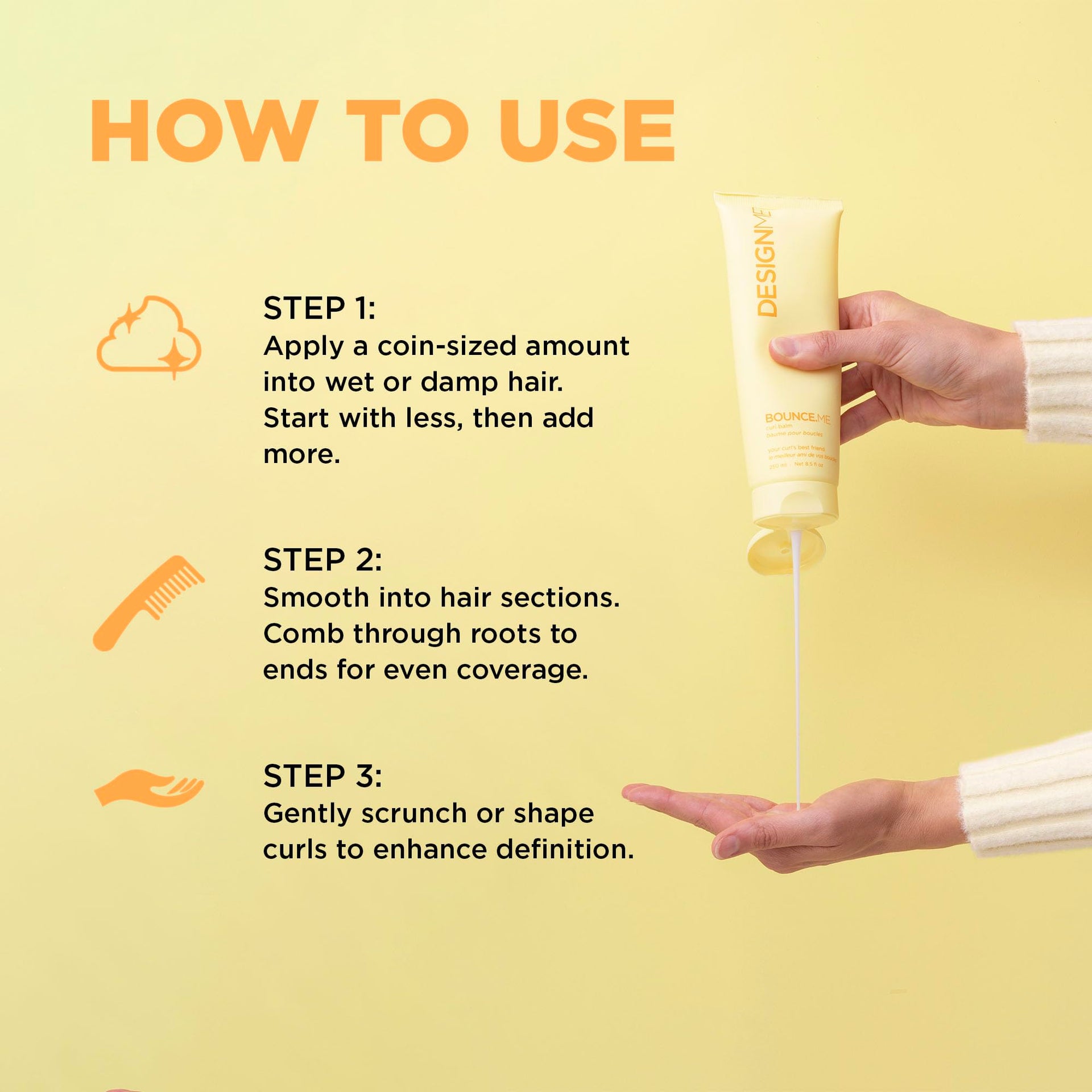 Design.Me BOUNCE.ME Curl Balm & Cream for Curly Hair | Argan Oil Formula for Waves, Coils & Curls | Defines, Hydrates & Adds Shine | 8.5 Fl Oz