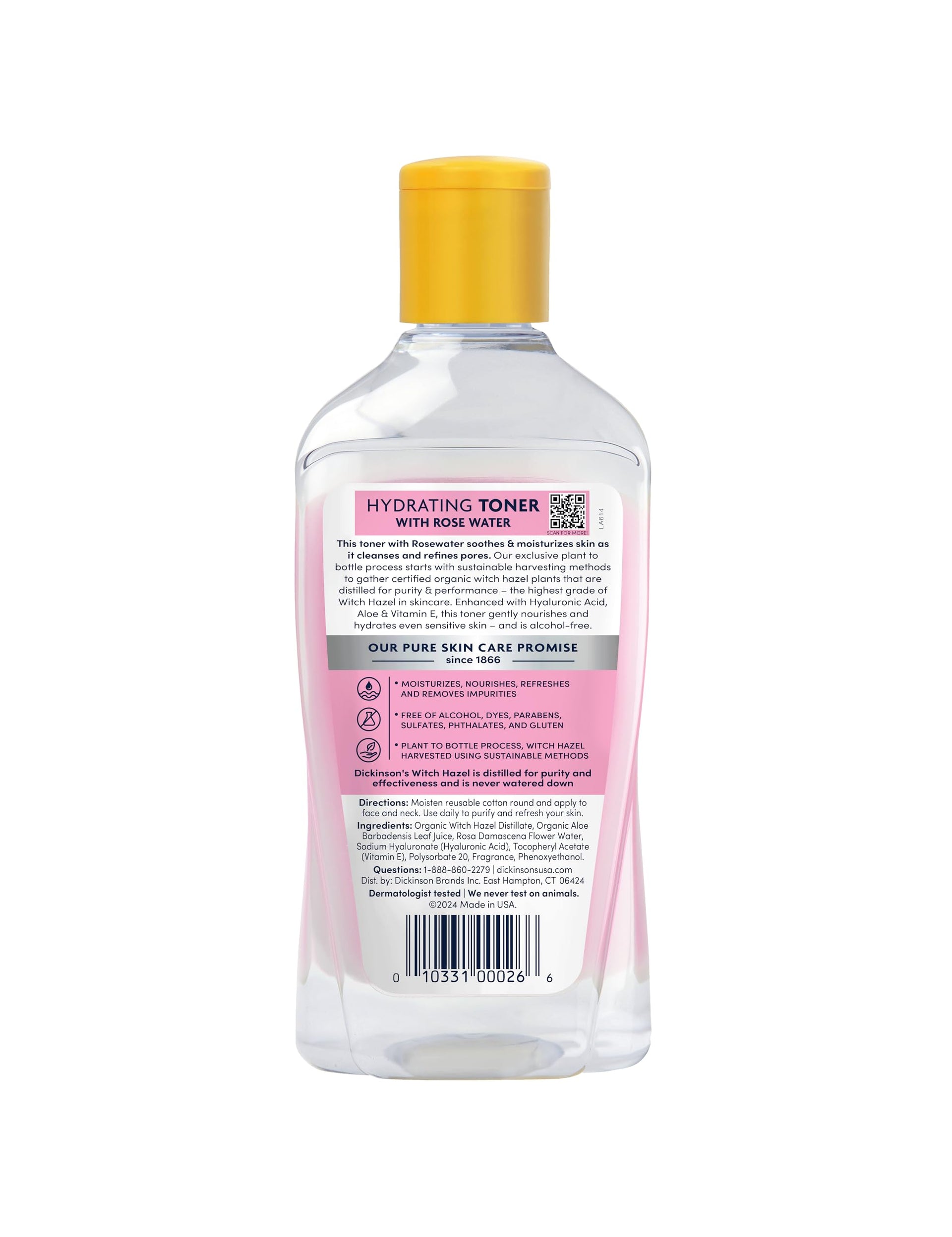 Dickinson's Enhanced Witch Hazel Hydrating Toner with Rosewater, Alcohol Free, 98% Natural Formula, 16 Fl Oz (Pack of 1)