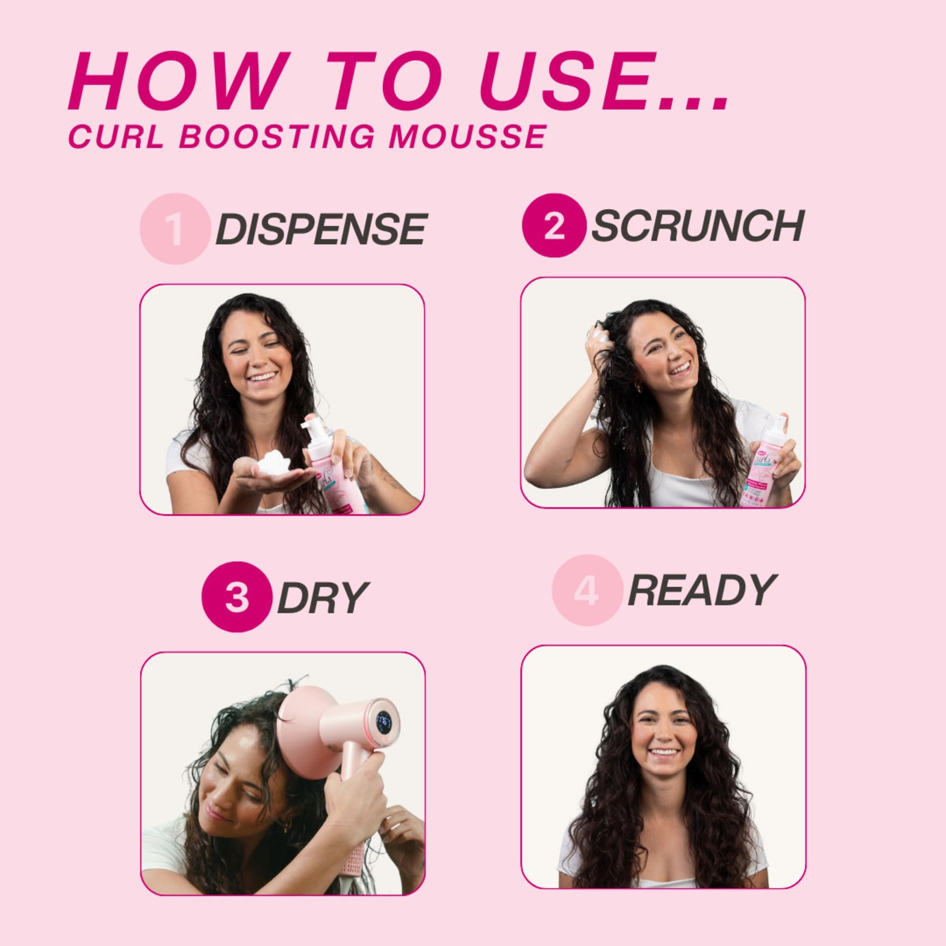 Dippity Do Girls With Curls Curl Enhancing Mousse, Light, 3-in-1 Defining Foaming Mousse for Curly Wavy Hair, Hibiscus, Olive Oil, Anti Frizz Bouncy Curls For Women, Air Dry, Alcohol Free, 6.7 Fl Oz