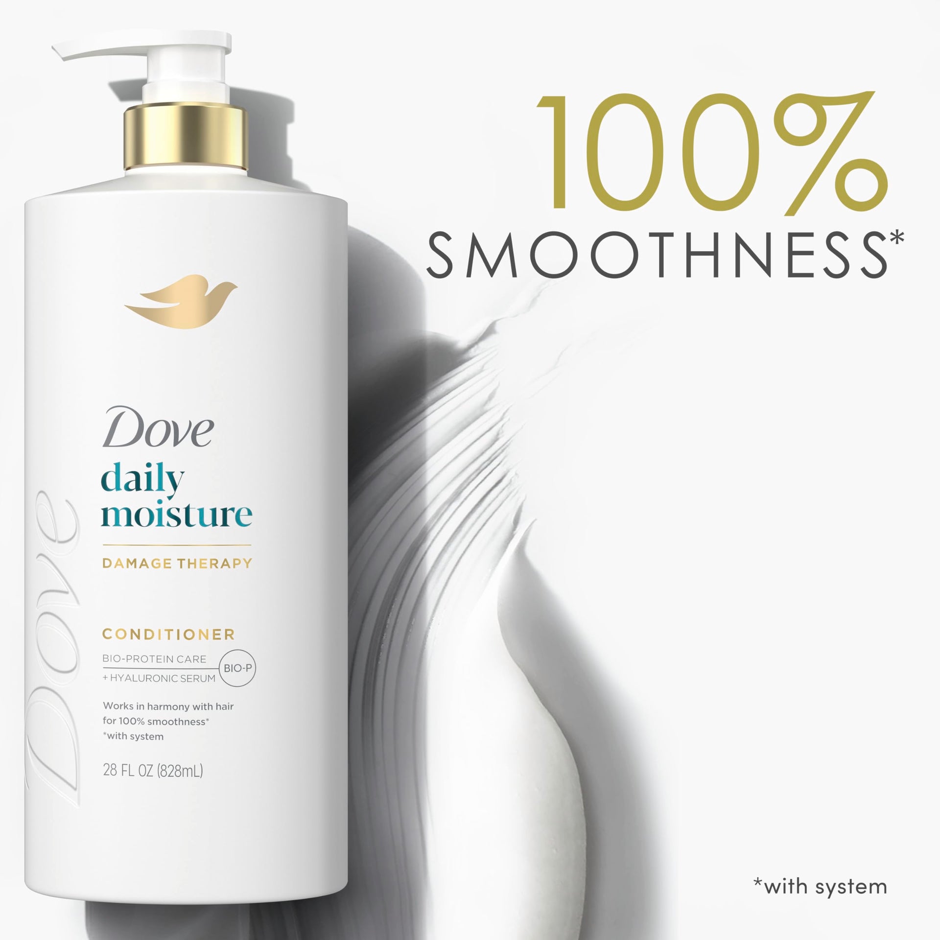 Details: Feel free and confident with beautifully hydrated hair. Revive your locks with ultimate hydration with Dove Daily Moisture Conditioner. This nourishing formula works in harmony with your hair for 100% smoothness. Dove Daily Moisture Conditioner is second in our 3-step regimen towards smoother, healthier looking hair. Use it regularly with Dove Daily Moisture Shampoo and complement it with Dove Hyaluronic Moisture Mask for extra hair repair and 100 hours of hydration. Our Daily Moisture range is enriched with Hyaluronic Serum, known to visibly moisturize, restore fluidity and soften hair and also features Bio-Protein Care technology, designed to regenerate hair strength and refill it with 1 trillion strength protein builders with every wash. Dove Daily Moisture hair products are ideal for dry hair. This formula leaves your hair soft, smooth and manageable from the 1st use. After using Daily Moisture Shampoo, apply and massage this conditioner from roots to tips; leave on for 1 minute, then rinse. For extra hair repair, use the Dove Hyaluronic Moisture Hair Mask once a week for maximum benefits. As always, Dove hair products are vegan and PETA-approved, meaning it’s not tested on animals globally. Discover hair freedom and free yourself from the worry of hair damage—embracing a new dawn of hair possibilities now. with 3 step system shampoo, conditioner/mask & serum
