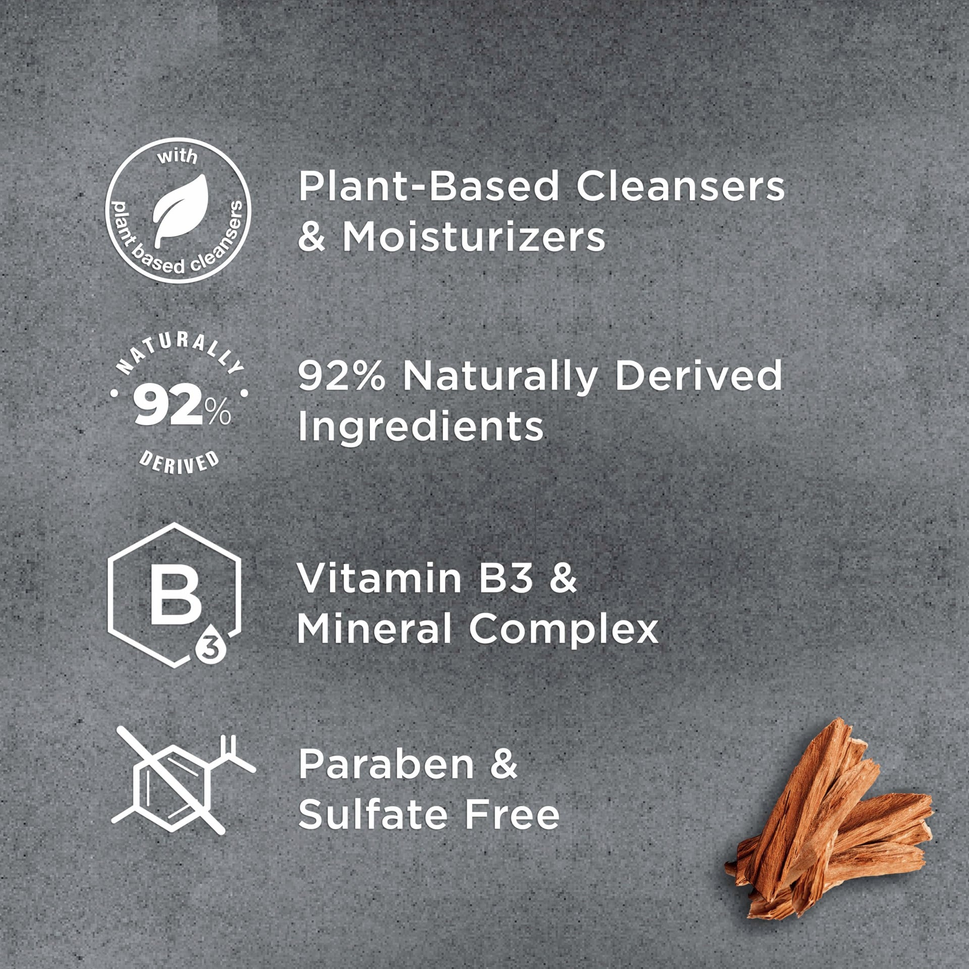 - Formulated with 92% naturally derived ingredients, natural essential oils and plant-based cleansers and moisturizers