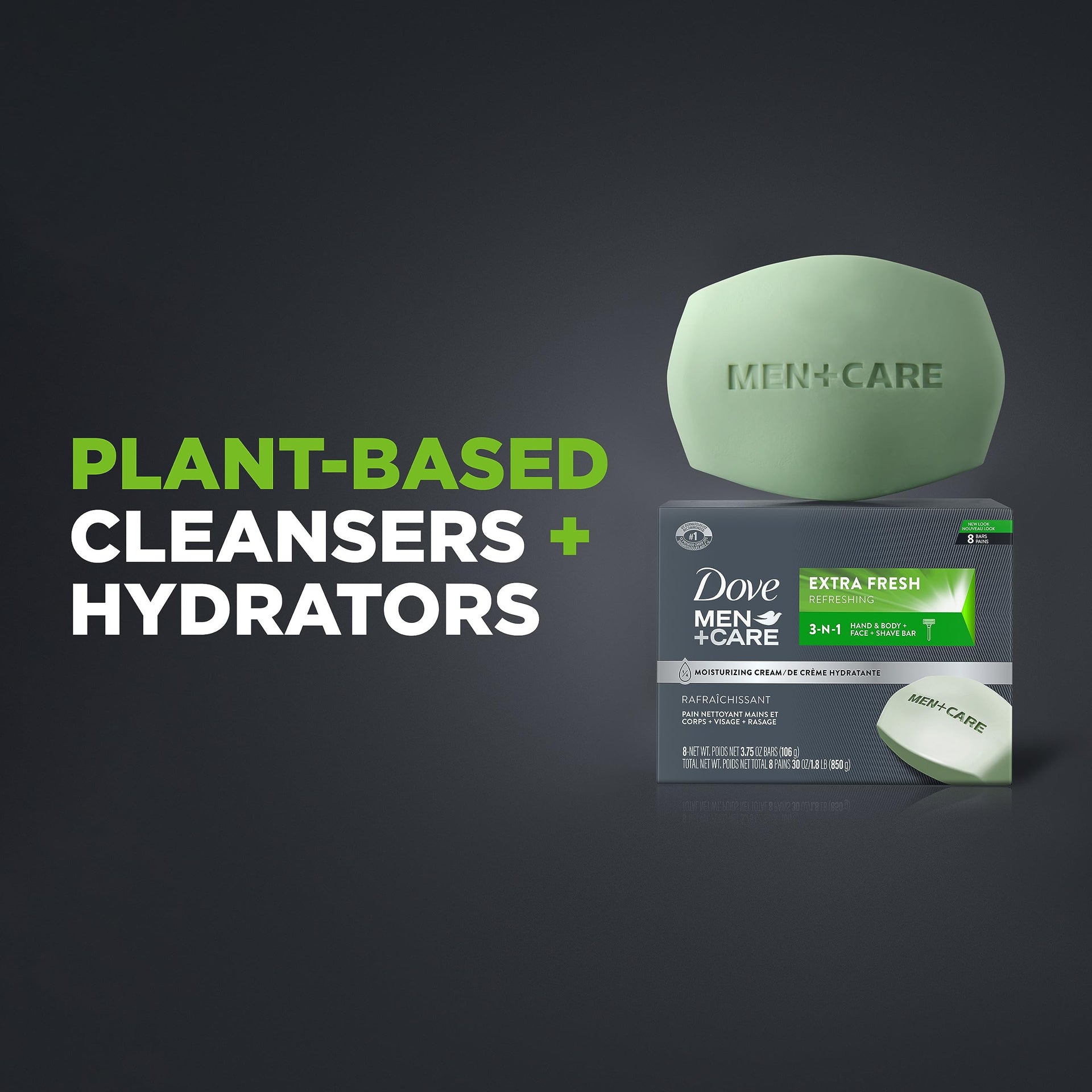 DOVE MEN+CARE 3-in-1 Bar Cleanser for Body, Face & Shaving, Extra Fresh, Moisturizing Soap Alternative, 3.75oz, Pack of 8