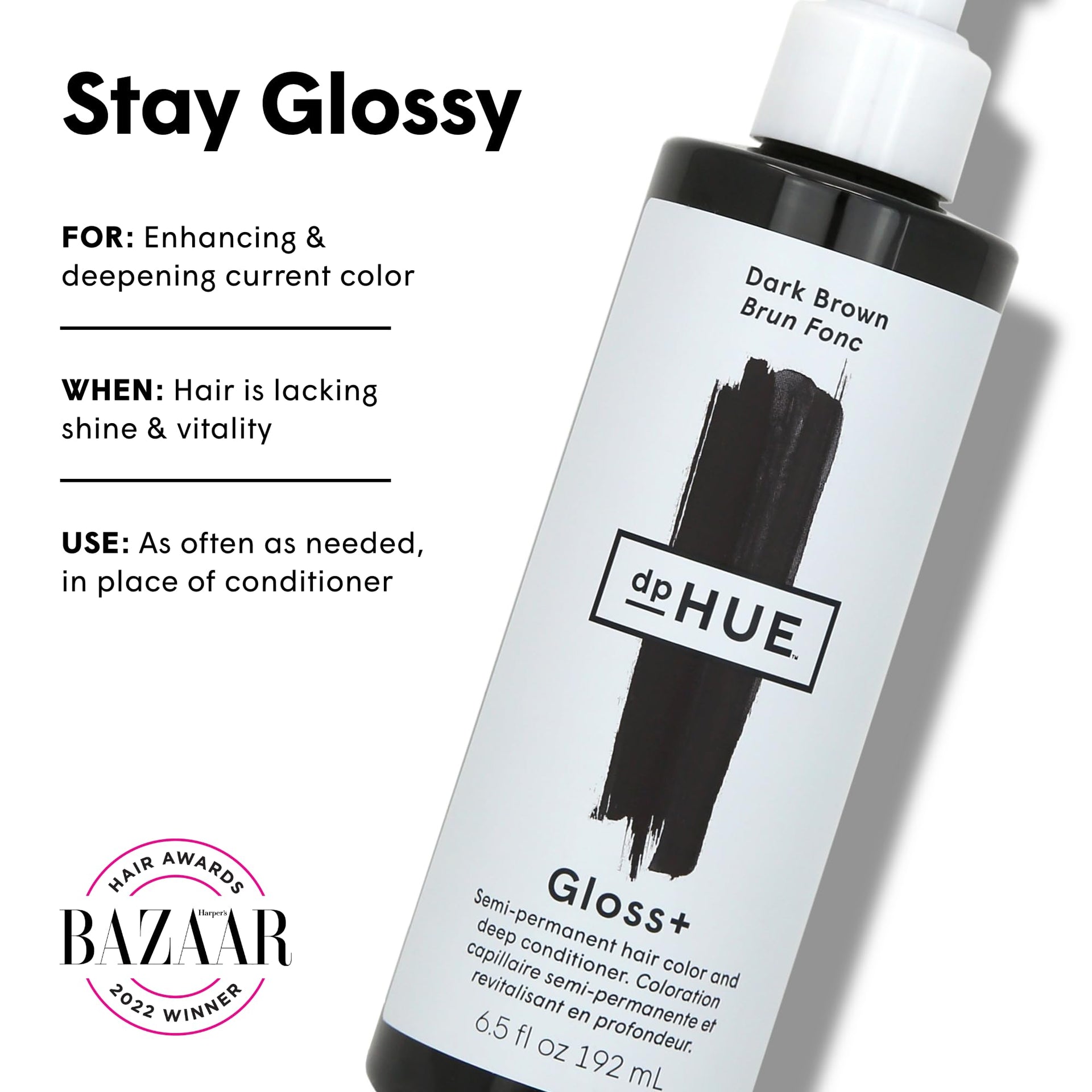 - WHEN TO USE - Whether you’re looking to add some luster during the winter, boost your existing color, or just deep condition & add shine before a big event, Gloss+ has got you covered. We recommend weekly use to maintain a healthy shine.
